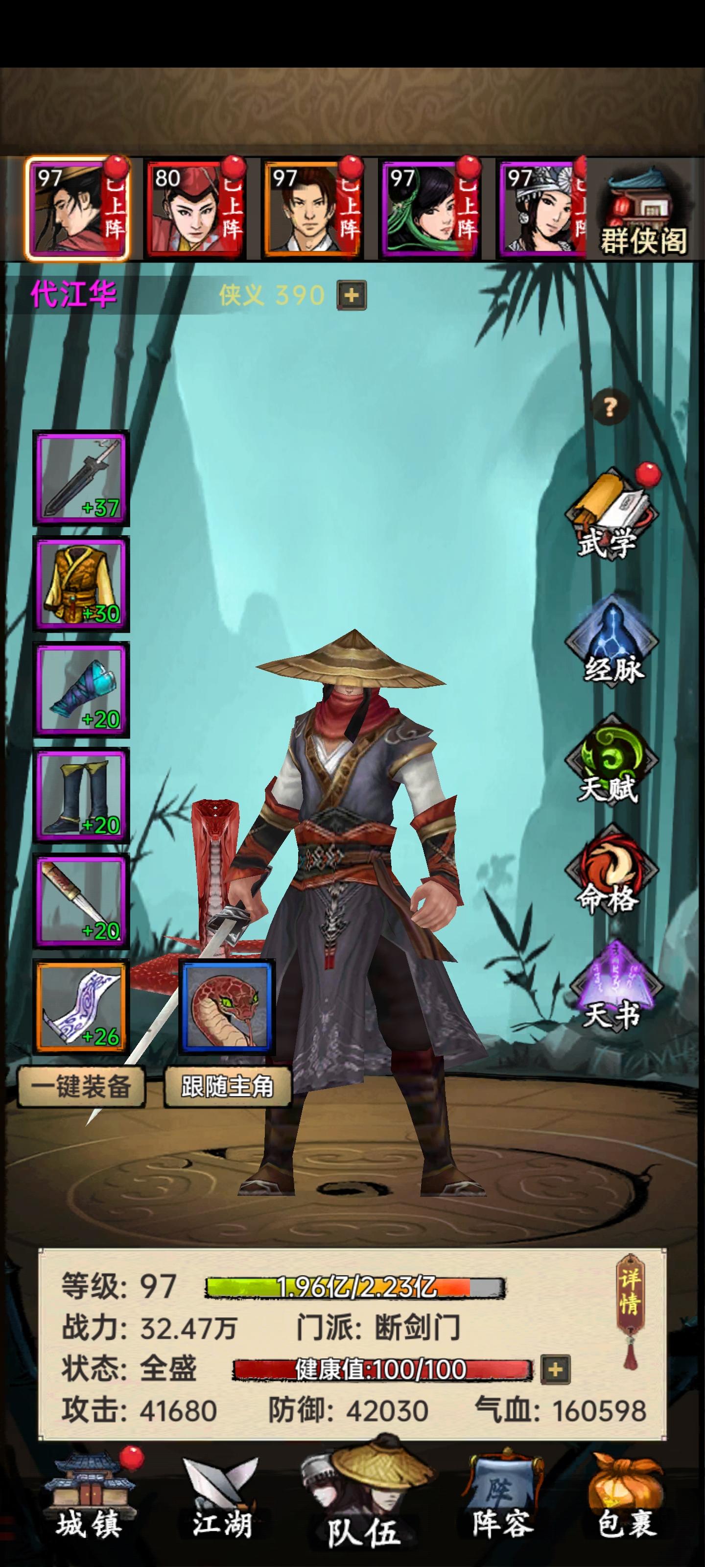 一共肝了265个小时,居然才超过43%的人平均每天刷4-5次塔,一次刷30-40层,现在主角97级,战力32.47w,经脉全部七级刷塔一共出了6本橙色,转盘也出了1本,一个月合计出了7本橙色,1剑法1刀法2轻功3内功,没有出过橙装备群侠阁的好感攒了4300红角色只出了一个带天赋的拳,刷了得有五千元宝,血亏主角资质刷到了386,基本上十颗资质丹就有一颗是➕0,磕了三百多资质