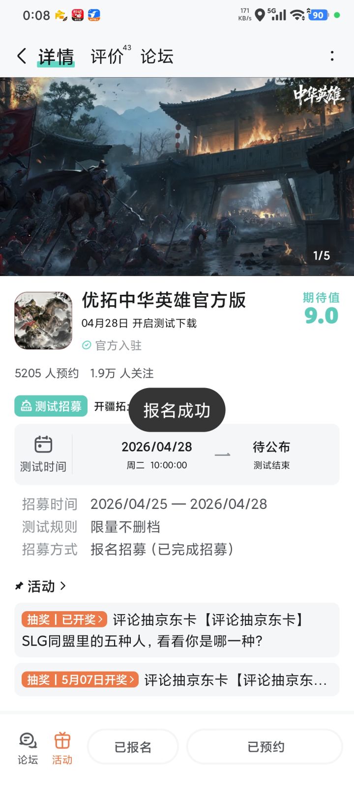 各位主公好:《中华英雄》「开疆拓土」限量测试招募开启!上一次测试后,感谢大家对我们的支持,大家的问题与建议我们都已收到,也做了调整。现在带着大家期待优化后的《中华英雄》重新回归测试。>>>点击即可参与测试招募参与晒图活动即可抽取京东卡好礼!【参与方式】1.关注《中华英雄》且发新帖晒游戏内截图(自带水印)2.在本帖下方评论区分享发帖链接即可【活动时间】即日起~2026年5月2日2