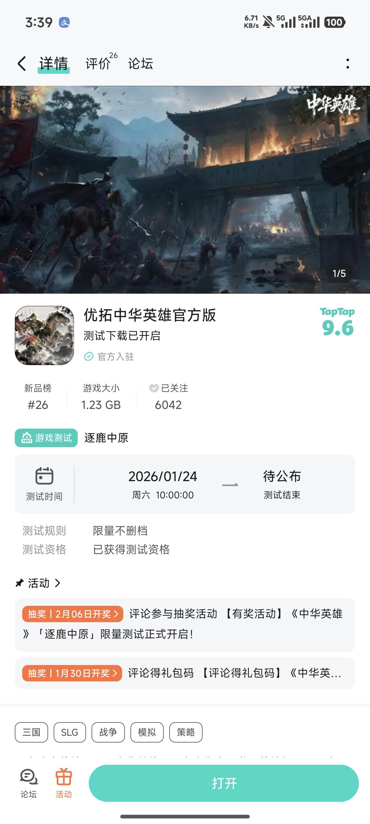没有注定的结局,《中华英雄》只有由你亲手书写的战报。天下大势,分久必合,合久必分——而这一次,执棋者是你。>>>点击即可预约【参与方式】1.关注《中华英雄》且发新帖晒截图2.在本帖下方评论区分享发帖链接即可【活动时间】即日起~2026年1月19日 23:59【活动奖励】京东卡,共10份【注意事项】1.仅有符合活动要求的评论会被视为有效参与活动,若回复内容未能满足活动要求,则被视