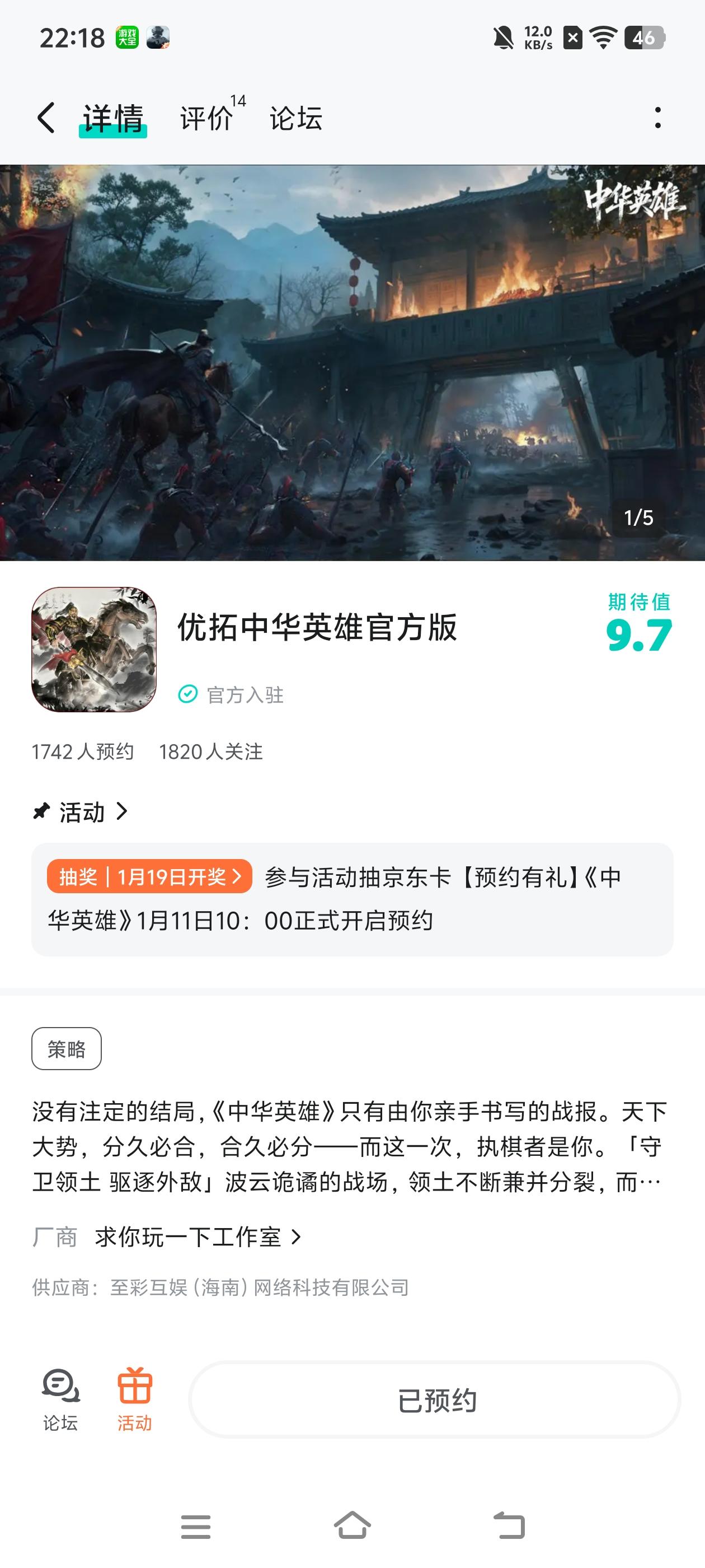 没有注定的结局,《中华英雄》只有由你亲手书写的战报。天下大势,分久必合,合久必分——而这一次,执棋者是你。>>>点击即可预约【参与方式】1.关注《中华英雄》且发新帖晒截图2.在本帖下方评论区分享发帖链接即可【活动时间】即日起~2026年1月19日 23:59【活动奖励】京东卡,共10份【注意事项】1.仅有符合活动要求的评论会被视为有效参与活动,若回复内容未能满足活动要求,则被视