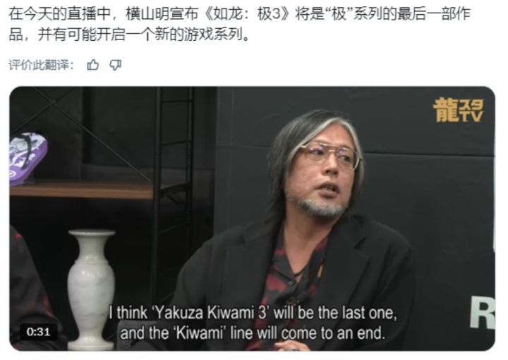 近日,《人中之龙》系列主创横山昌义在直播活动中表示,《人中之龙极3》很大可能成为极系列的收官之作,团队未来也很大概率将开启全新故事线,而非以《人中之龙9》这类正传编号形式延续剧情。横山昌义在直播中进一步说明,后续新作很大概率不会沿用传统正传数字编号推出《人中之龙9》,而是计划打造一条独立的全新故事线,为系列带来新的发展方向。《人中之龙极3》包含本体重制内容与全新外传Dark Ties,将于2月1