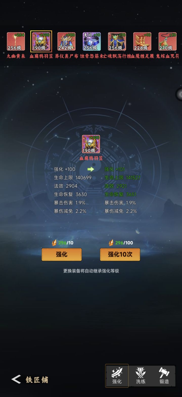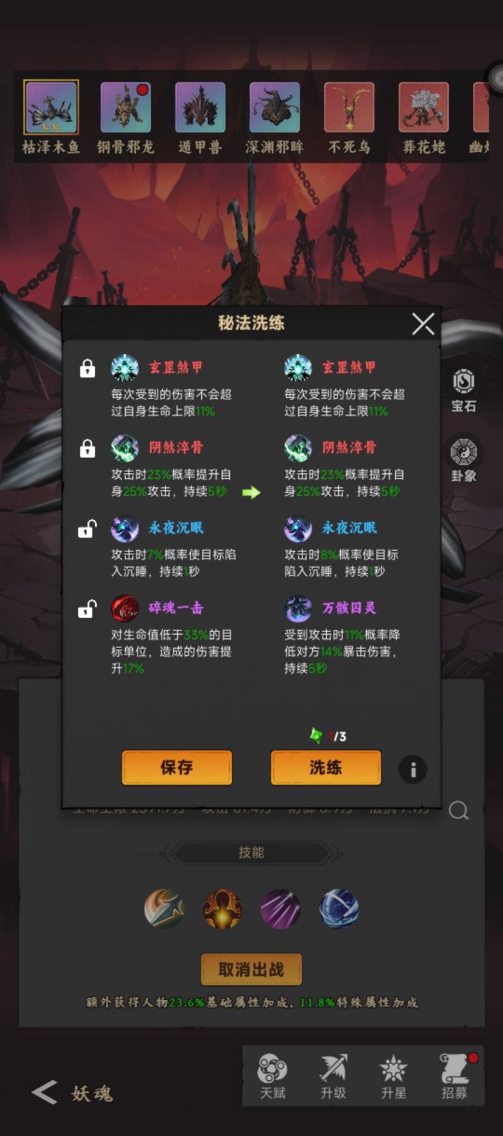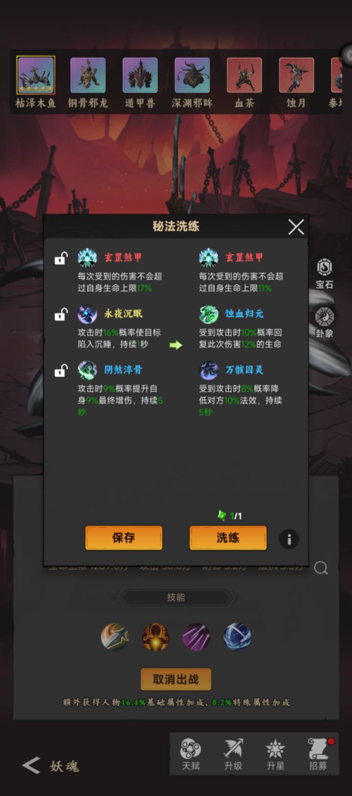 前前后后得洗了500多次,终于出了个11,接下来就是锁1洗阴煞加攻击和沉眠了