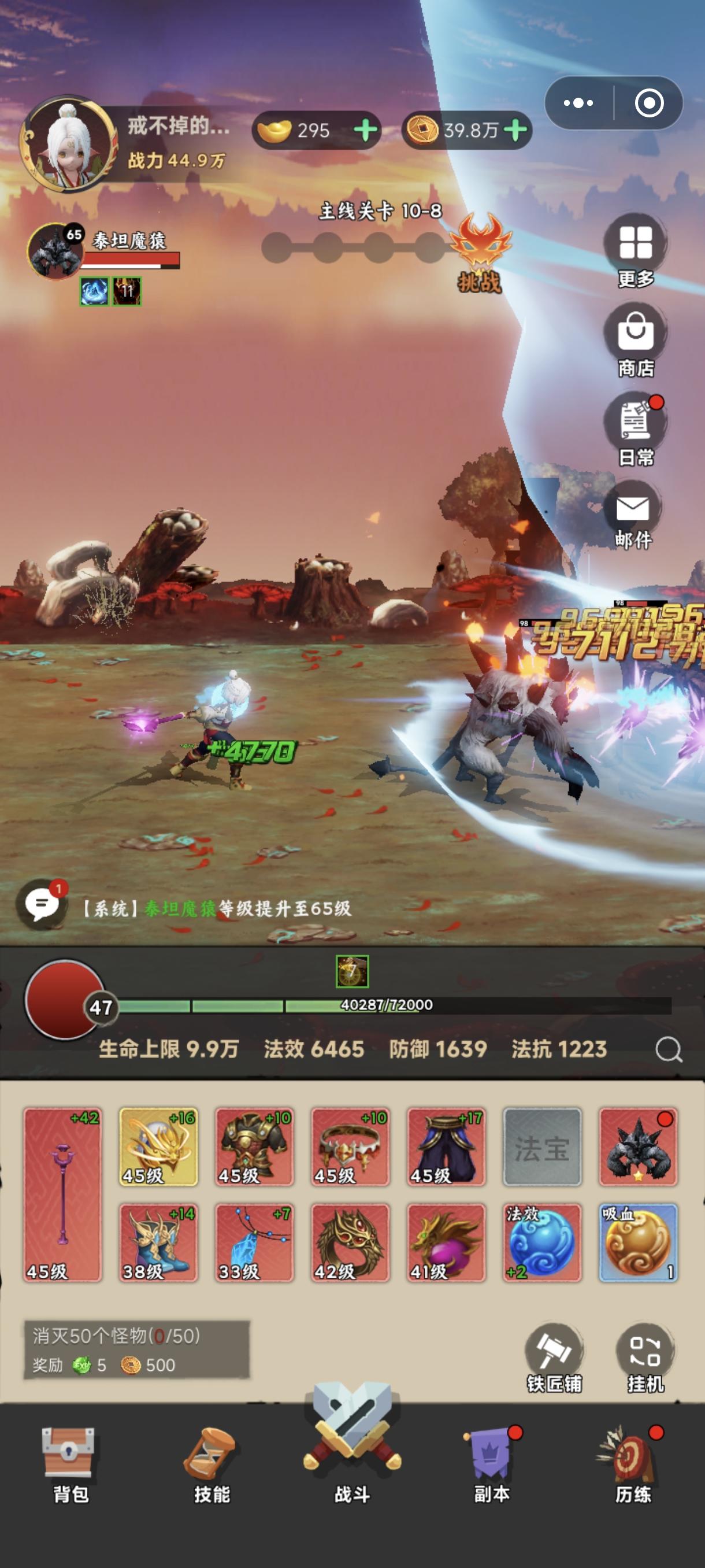 上线邮件300元宝直开月卡,棒棒哒零氪玩法师,搭配猴子,利用碎片时间玩玩挺好的,玩累了就离线挂机。支持一个