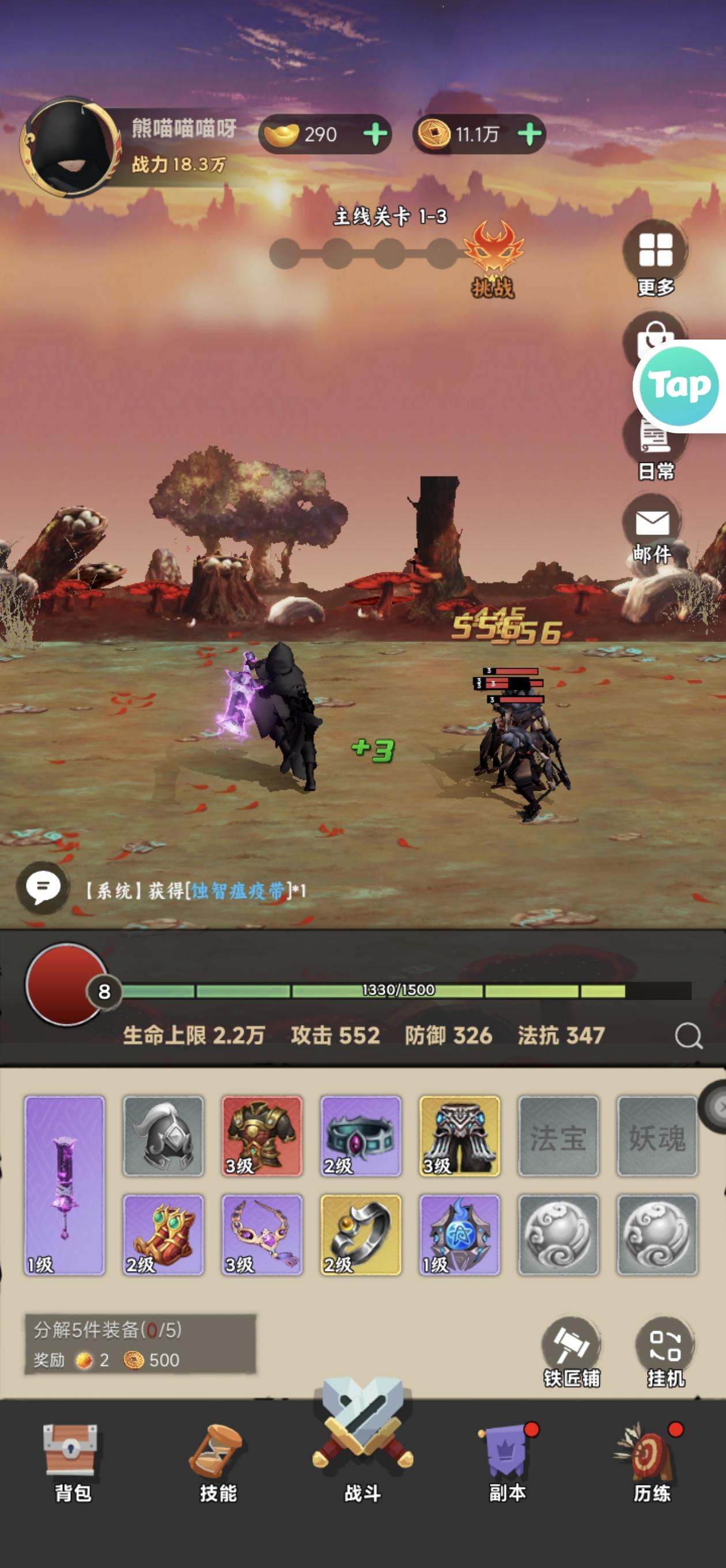 《无敌从挂机开始》真的是懒人玩家的福音!竖屏单手操作超便捷,离线挂机20多分钟就能收获一堆36级装备和资源,不用爆肝也能稳步涨战力,养成毫无压力。 日常任务玩法简单,分解装备、挑战副本就能拿奖励,上手特别快;还有典藏卡、至尊卡的福利体系,经验加成让升级效率直接拉满,休闲玩也能有不错的体验,太适合碎片化时间摸鱼了1. 懒人狂喜!离线挂机狂爆装备,竖屏单手操作,摸鱼党必备!2. 不用肝不用氪,