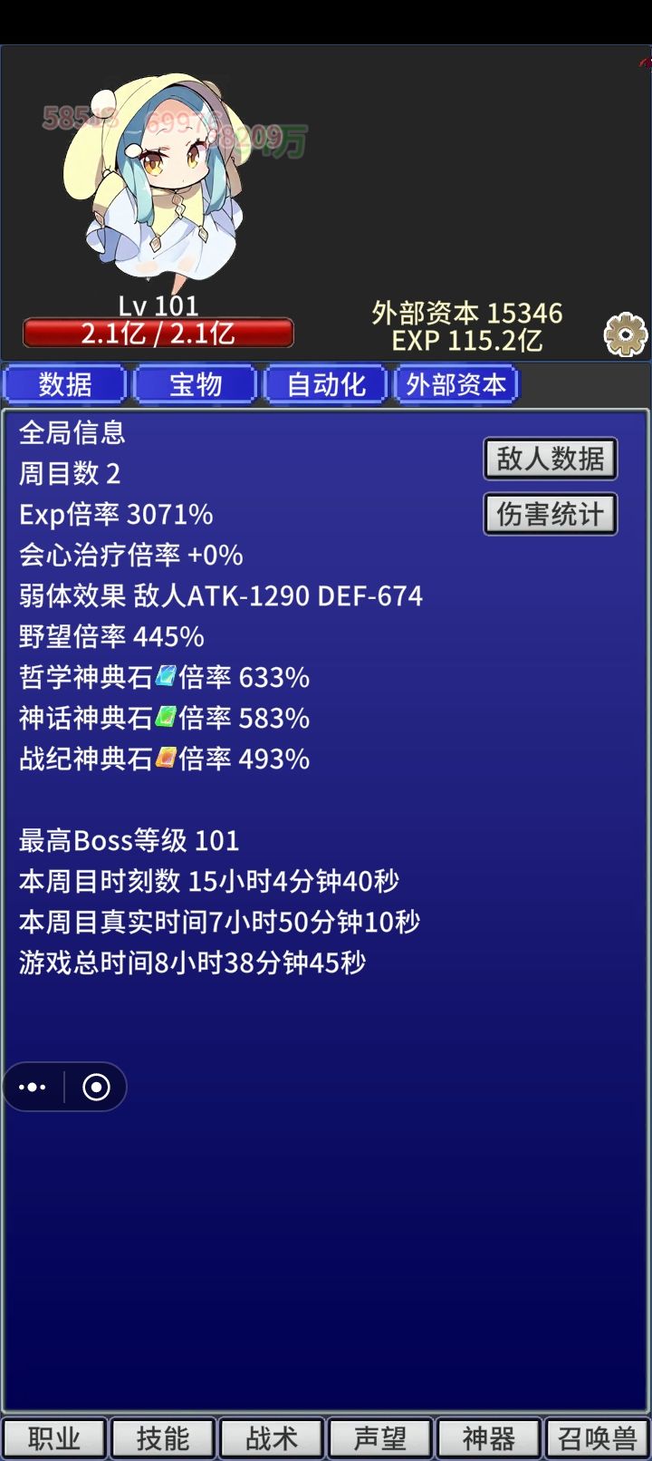 Boss101级有回血根本打不动,只能进入周目三了
