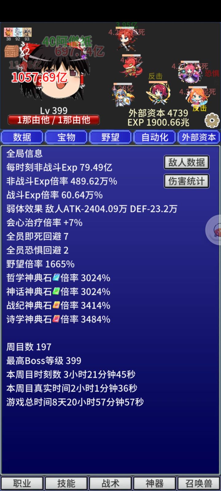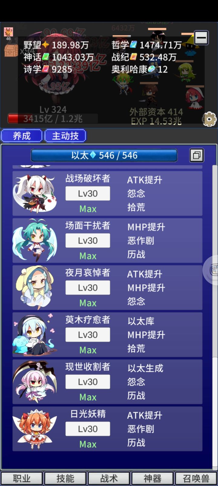 一、非生存端的建议1.盗贼(10级职业特性)升级后可以替换中排的天马骑士或刺手2.时魔法师可以替换后排的舞者盗贼特性养成方面很强,建议在BOOS强度较低时带上,刷奥哈利康和神抽召唤怪都挺好用时魔法师伤害很高,换掉只有生存属性还站后排的舞者,频繁重置刷资源和冲BOOS等级都可以用不考虑冲BOOS等级,只刷资源就完全不用考虑生存,上图这队已经足够(如果对应精锐没有培养,可以用一百级左右解锁的