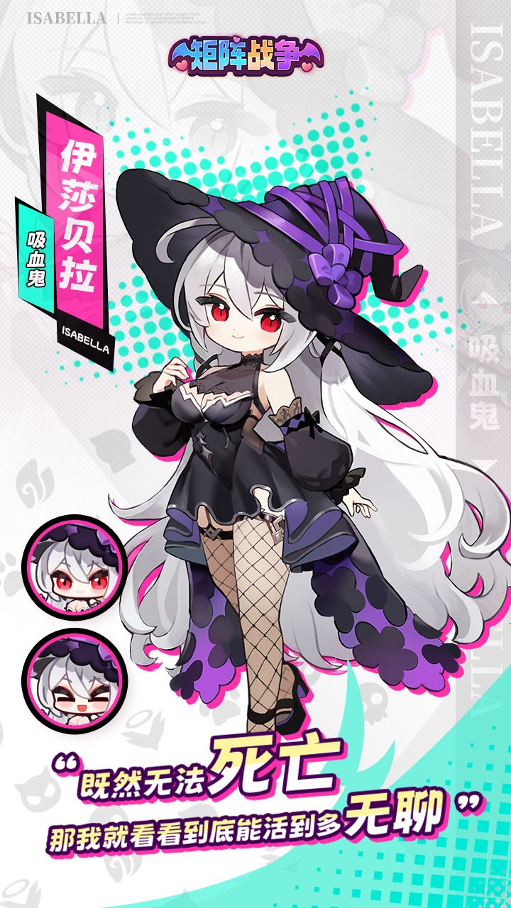 “既然无法死亡……那我就看看到底能活到多无聊。”✦伊莎贝拉✦吸血鬼✦种族:不死族✦职业:弓手她是曾经的王国魔法学院顶尖术士,天赋卓绝,却因研究被视为“异端”的禁术而被驱逐。身负“不死”之咒的她,已无需呼吸与进食,血液早已化作黑雾,在时间中缓缓漂流。她游走于废墟与深林之间,操纵恐惧、操控心灵,只为寻找“命运的漏洞”。在她眼中,这个世界只是一个充满变量的实验箱。她用“游戏”的态度观察世界,