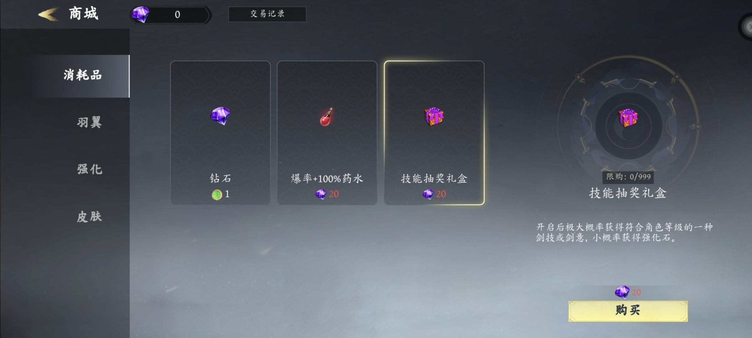 介绍说的技能要买抽奖盒子才能出,最重要的是套装属性加成技能不是自带的技能要抽奖出的