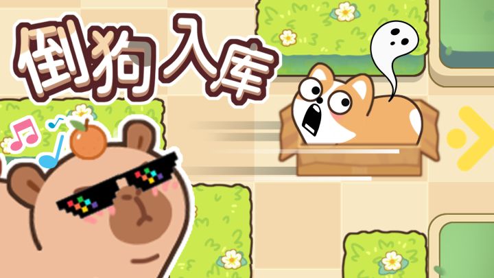 这是一个类似华容道的解谜游戏!你的小狗被困在了花园之中,尝试移动场上的花丛,让你的小狗从花园中被拯救出来吧!
