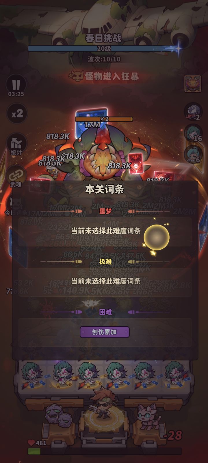 就选了一个词条,小丑升级到16级,这都打不过,咋玩