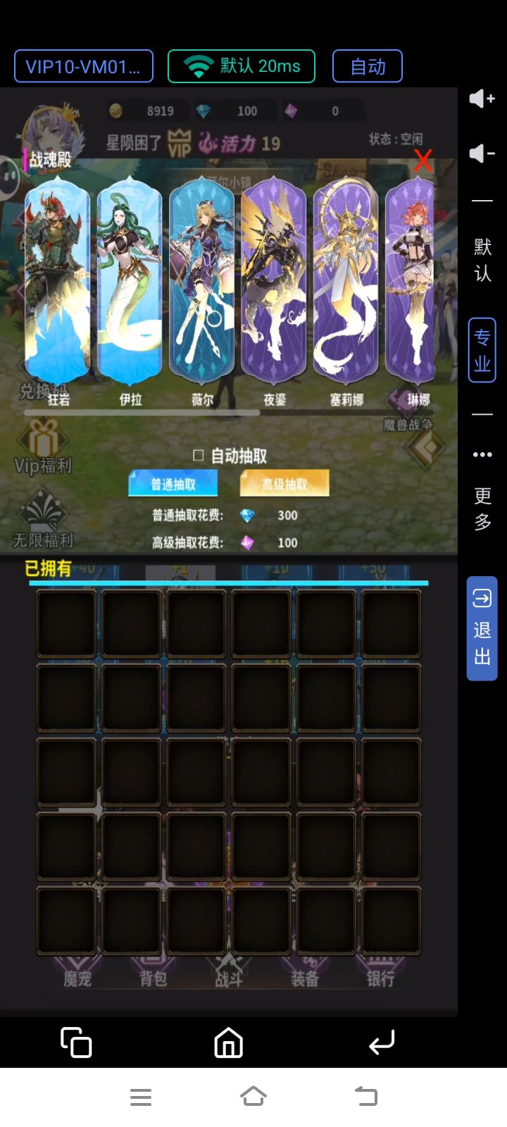 战魂殿:抽取战魂,可以花钻石和星石抽取,每个战魂有不同的词条,选择地图的时候可以带,这个前期不建议抽,除非有俩三万钻石。 转职:10级解锁,这个最好是提前把1-30级的装备留几个,金币也留个几万锻造魔兽战争:金钥匙开boss掉落高等级装备和其他材料。 设置:换手机需要退出账号等他自动退出,上传需要一些时间魔宠:vip福利里面有两个,19级地图有一个,每个氪金职业都送两个。洗练:消耗金币和钻