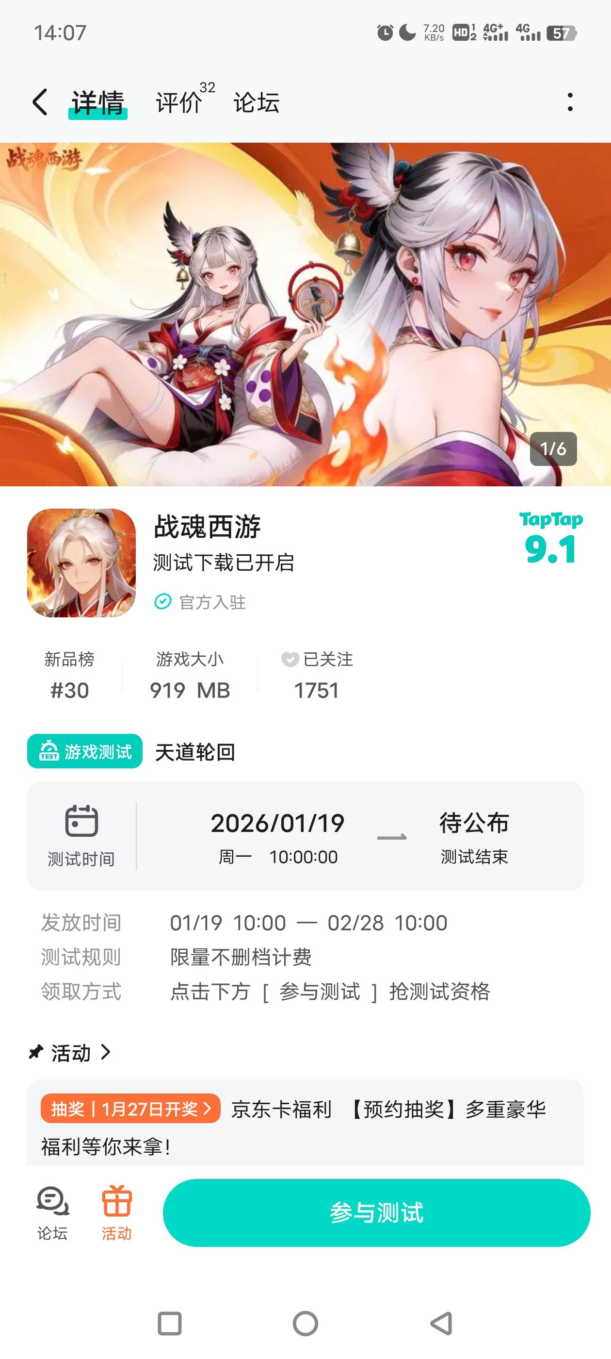 无职业束缚,随心搭配妖族速攻、仙佛控制等多元卡组,火焰山、通天河等场景地形暗藏玄机,紫金葫芦、金刚琢等法宝更能一键扭转战局。经卷空白,天道由你创造,千万种前路,尽在卡牌翻转之间。🎁 开测专属福利:【京东卡抽奖活动】▶ 参与方式1.点击关注发帖账号并预约《战魂西游》且发新帖晒截图2.在本帖下方评论区分享发帖链接即可【奖品发放】到达开奖时间后,由taptap系统随机抽取符合要求的幸运玩家,