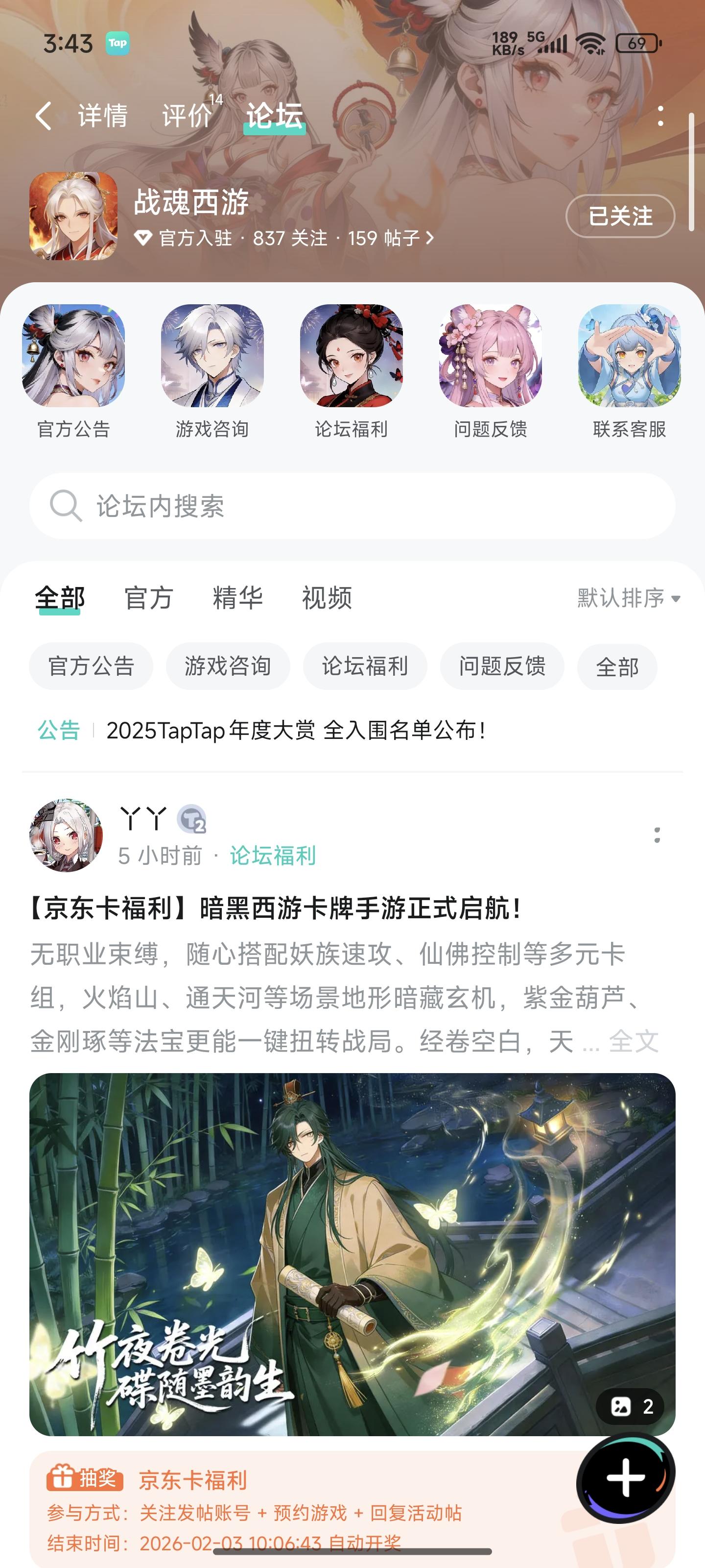 无职业束缚,随心搭配妖族速攻、仙佛控制等多元卡组,火焰山、通天河等场景地形暗藏玄机,紫金葫芦、金刚琢等法宝更能一键扭转战局。经卷空白,天道由你创造,千万种前路,尽在卡牌翻转之间。🎁 开测专属福利:【京东卡抽奖活动】▶ 参与方式1.点击关注发帖账号并预约《战魂西游》且发新帖晒截图2.在本帖下方评论区分享发帖链接即可【奖品发放】到达开奖时间后,由taptap系统随机抽取符合要求的幸运玩家,