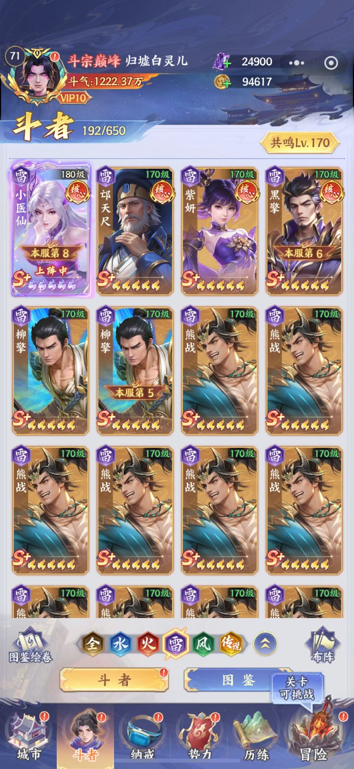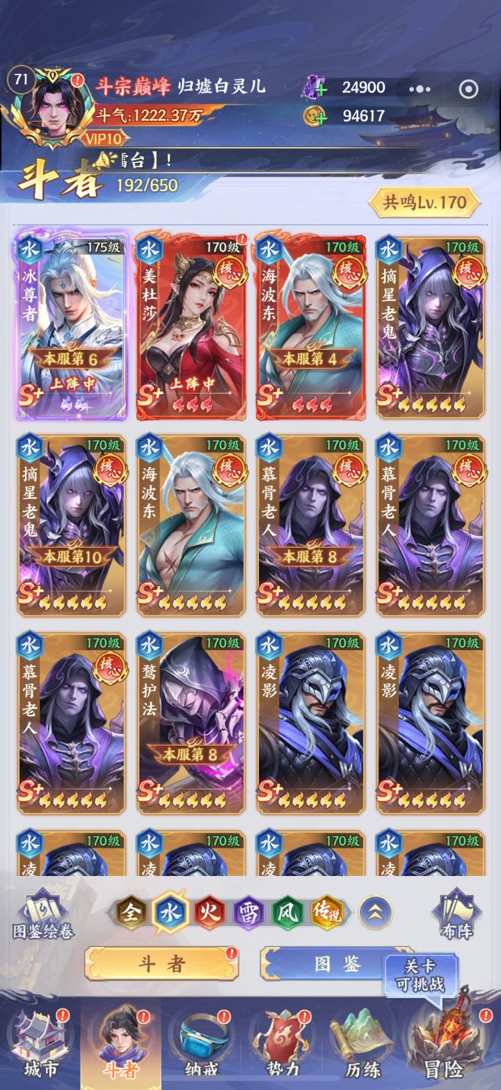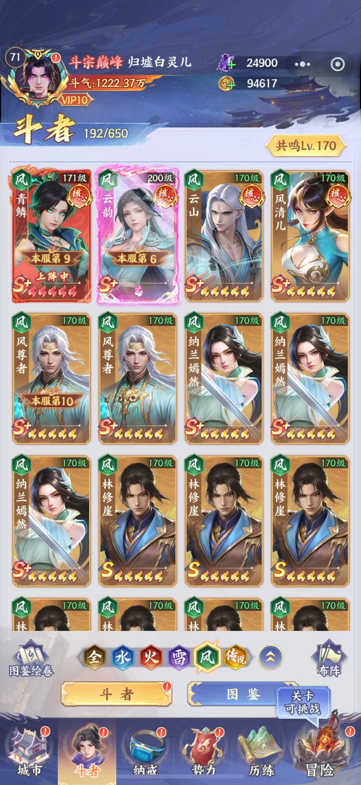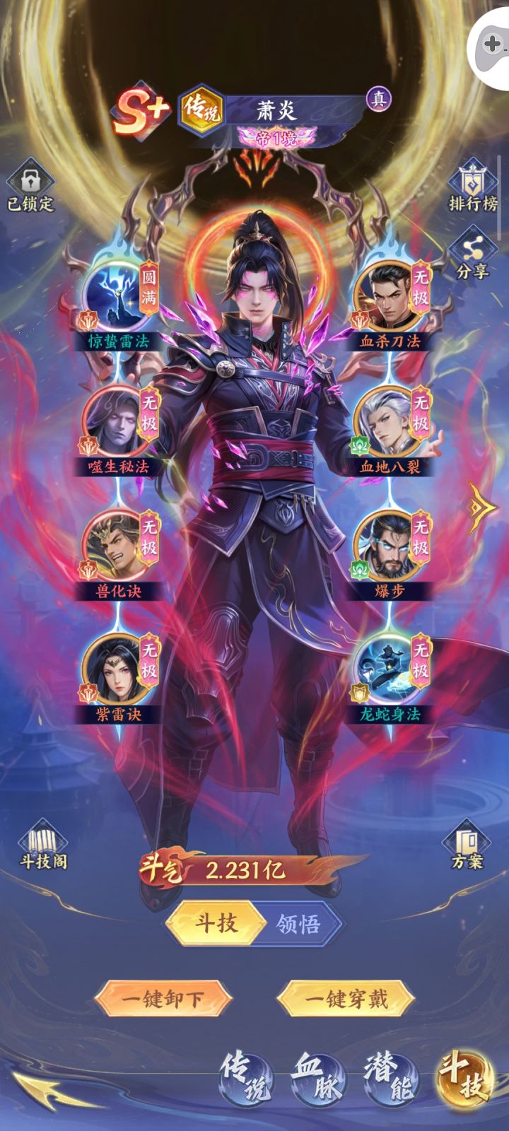 氪的都是满6减3的代金券,零碎买过一些6元礼包,所以没有什么零氪以上的道具。最近没什么时间玩,基本就是做做每日,没太研究,斗技配置什么的仅供参考,未必是最好的选择。今天做每日时试炼之塔打得挺顺,索性就试试能不能通,直接打了200多关,除了红莲业火的关卡把玄机铠换给萧炎外,没有任何调整,一路点下去也没太卡,所以这个配置通关应该不算吃力。