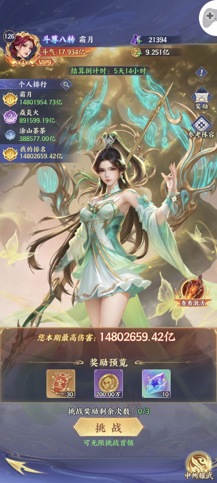 中乘零氪30天毕业战力1.8亿推塔3015遗迹190