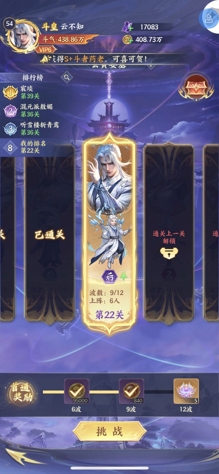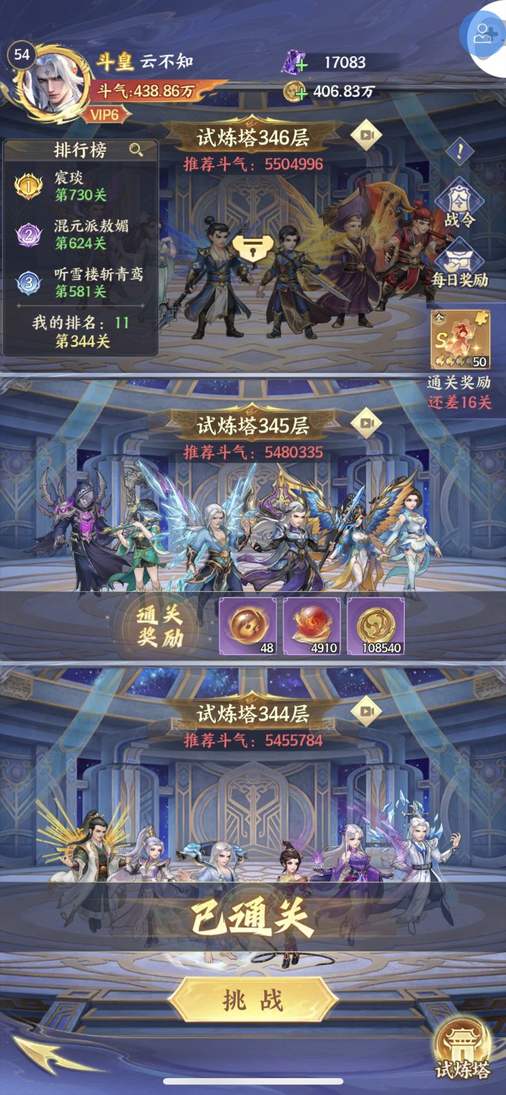 萧炎第四天就可以帝境了,之所以没升是考虑收益最大化,彩5可以吃到炎帝活动满奖励.升帝境的本体可以后边慢慢等抽到白嫖.其余4个小娘们全彩1是为了解锁天赋,目前萧炎站在5号位=======第一回合轮到他出手时可达16怒气.========至于这个熊战纯冲人数的,钻3正好后边给萧炎当狗粮升帝境.爬塔轻松越战接近一倍战力,毋庸置疑的简单粗暴目前PVP一拳超人,任何队伍即使同战力也是全屏秒杀,火