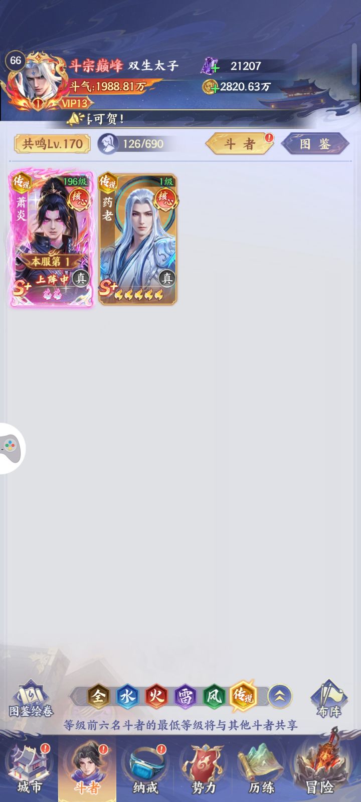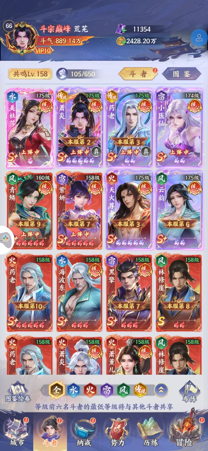 如图,萧炎,美杜莎,青檀,小医仙,薰儿,紫麟,除了萧炎粉五,其他都是紫五,传药老链接的青檀,传说萧炎链接的紫麟,这样调整行不行,接下来就是狂拉紫麟升传说萧炎,这样调整行不行?给个建议