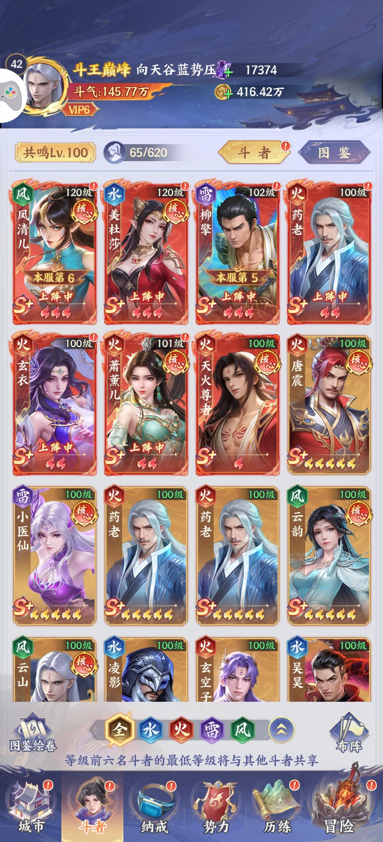 开服第二天,目前的阵容是这样,打算把美杜莎换成冰尊者,青鳞换成风清儿。萧炎我一开始就没养,请问后续还需要再去养吗。有大佬给个意见吗? 顺便找个有充值的互绑的,我是天之骄子服务器的