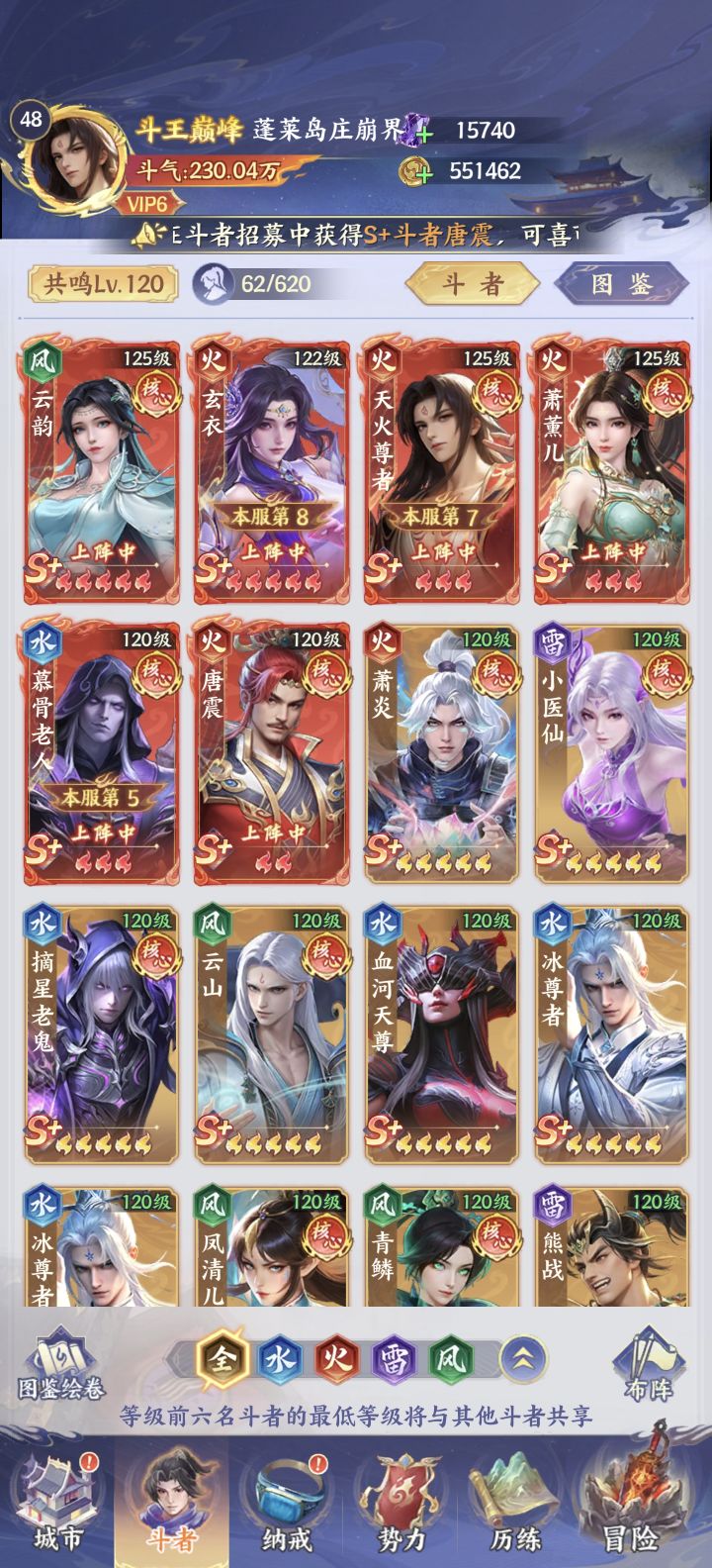 昨天听大伙的意见,还是决定不拉萧炎了,先这个阵容用着,等传说萧炎出来再拉传说萧炎,就是可惜了新服第三天那个炎帝破境的活动,我没拉萧炎拿不到奖励。现在太缺进阶石了,不缺本体不缺狗粮,进阶石够我就能全拉到粉彩,可惜缺口太大了
