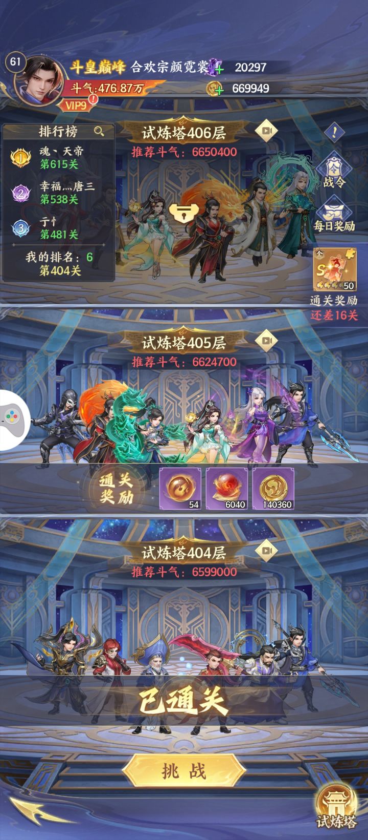 真爬不动了,这套前期阵容的上限也就这样了,等传说药老和传说萧炎了