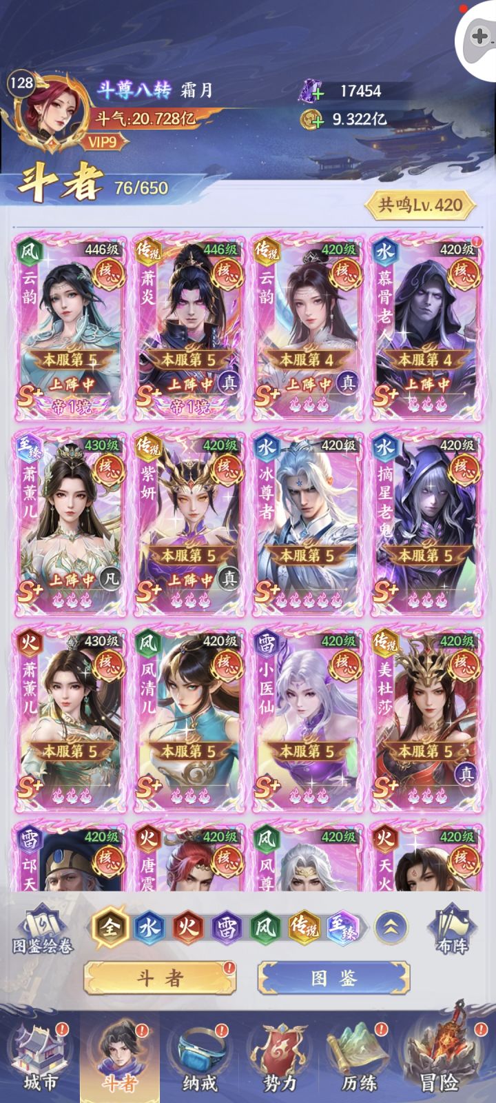 求大佬们指点思路,实在是没招了,就按照零氪思路来,买的礼包换了一个青鳞,一个小医仙,俩冰尊者,萧炎是昨天抽出来的,唐震依旧抽不到本体,有个大佬推荐我弄纳兰嫣然给传萧链接,可惜我昨天喂了俩嫣然当狗粮了....云韵已经抽不到了,没招了,@文某人@流刃若火