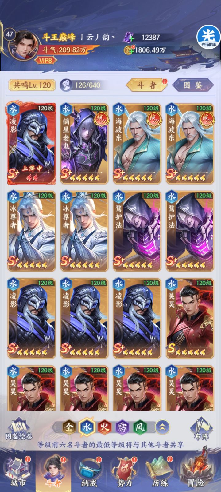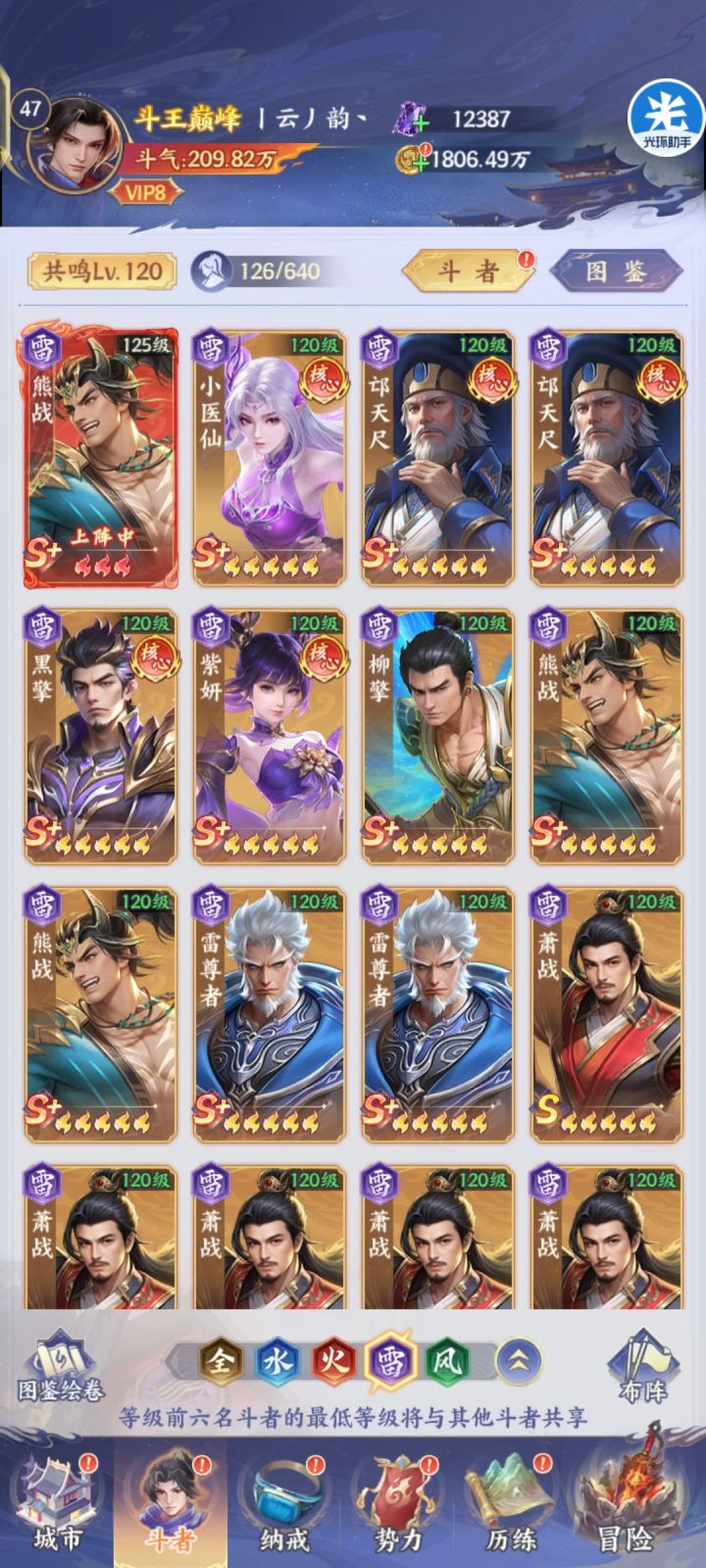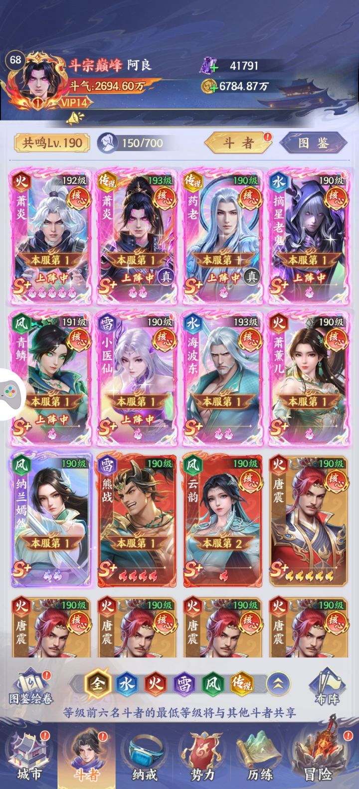 萧炎第四天就可以帝境了,之所以没升是考虑收益最大化,彩5可以吃到炎帝活动满奖励.升帝境的本体可以后边慢慢等抽到白嫖.其余4个小娘们全彩1是为了解锁天赋,目前萧炎站在5号位=======第一回合轮到他出手时可达16怒气.========至于这个熊战纯冲人数的,钻3正好后边给萧炎当狗粮升帝境.爬塔轻松越战接近一倍战力,毋庸置疑的简单粗暴目前PVP一拳超人,任何队伍即使同战力也是全屏秒杀,火