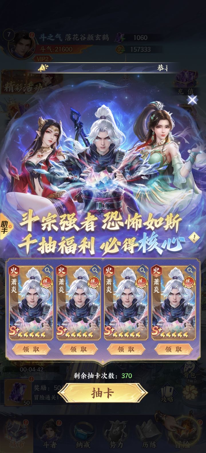 白嫖三发单抽出传说萧炎什么水平?