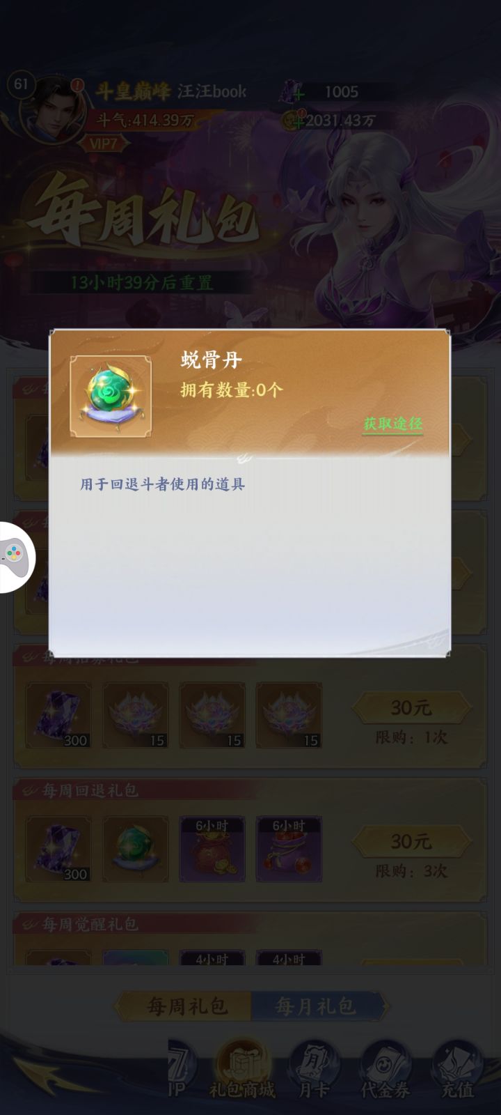 这个道具只有花钱才能获得吗,本来要升熊战给药老链接,手给点快了把萧战升到4星去了,现在只有商城30块才能买这个回退道具,不花钱还能补救吗