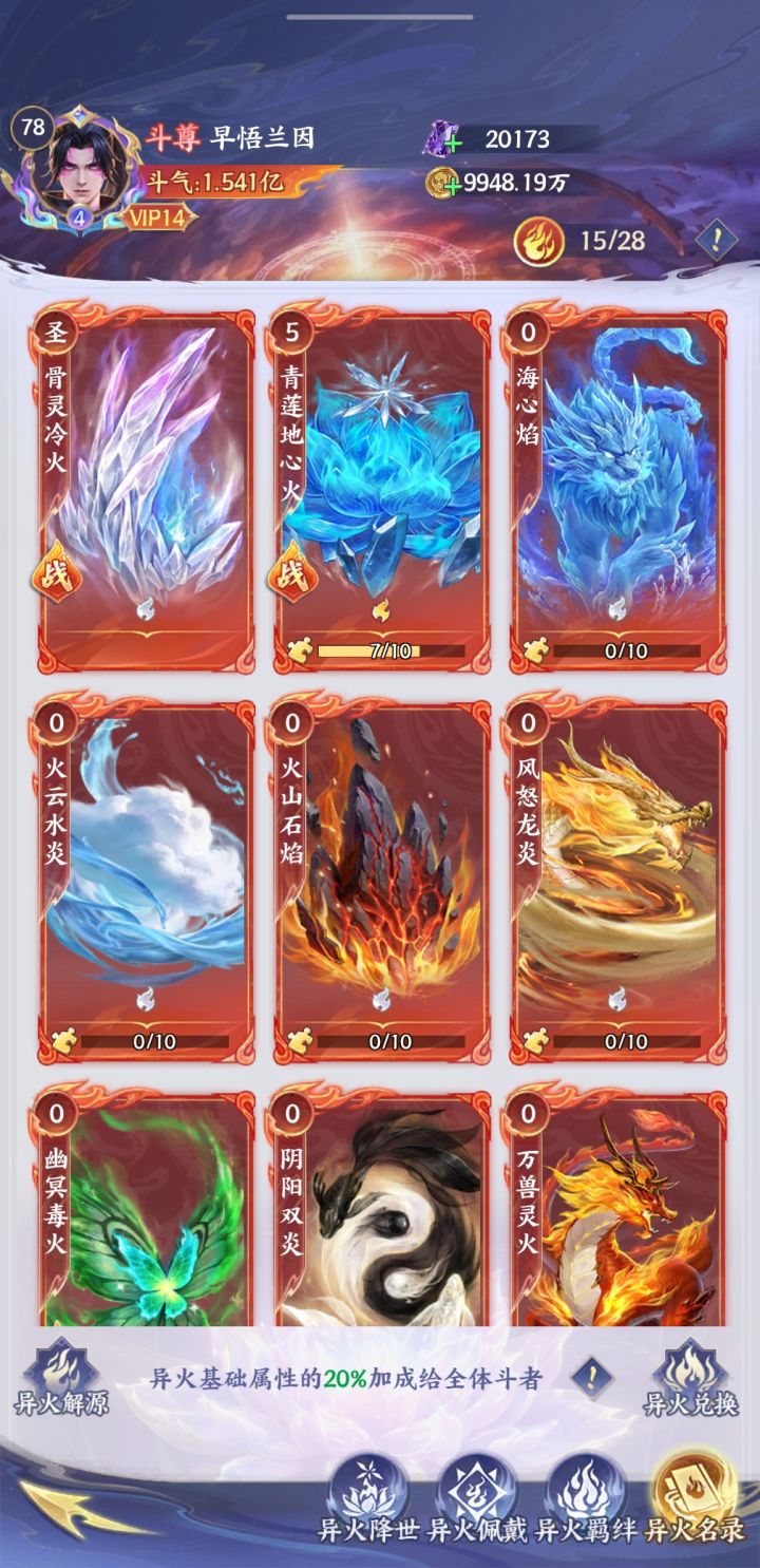 15天开了异火活动,战力加了七千万,真是几天一翻倍,夸张