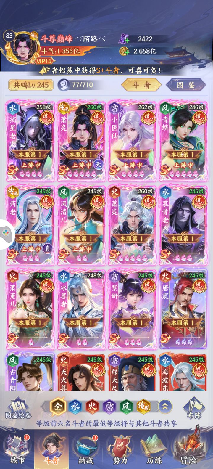 本来想玩云韵的,但是等到12天这个活动阵营抽出的时候全给我出了云山,所以我拉到粉一都还有两只,并且把我红五星的云韵给云山当狗粮吃了,然后今天抽了招募十连出了个萧炎,我的千抽还没选应该选消炎吗,加上阵营的积分,还有自选的箱子应该可以搞七只消炎