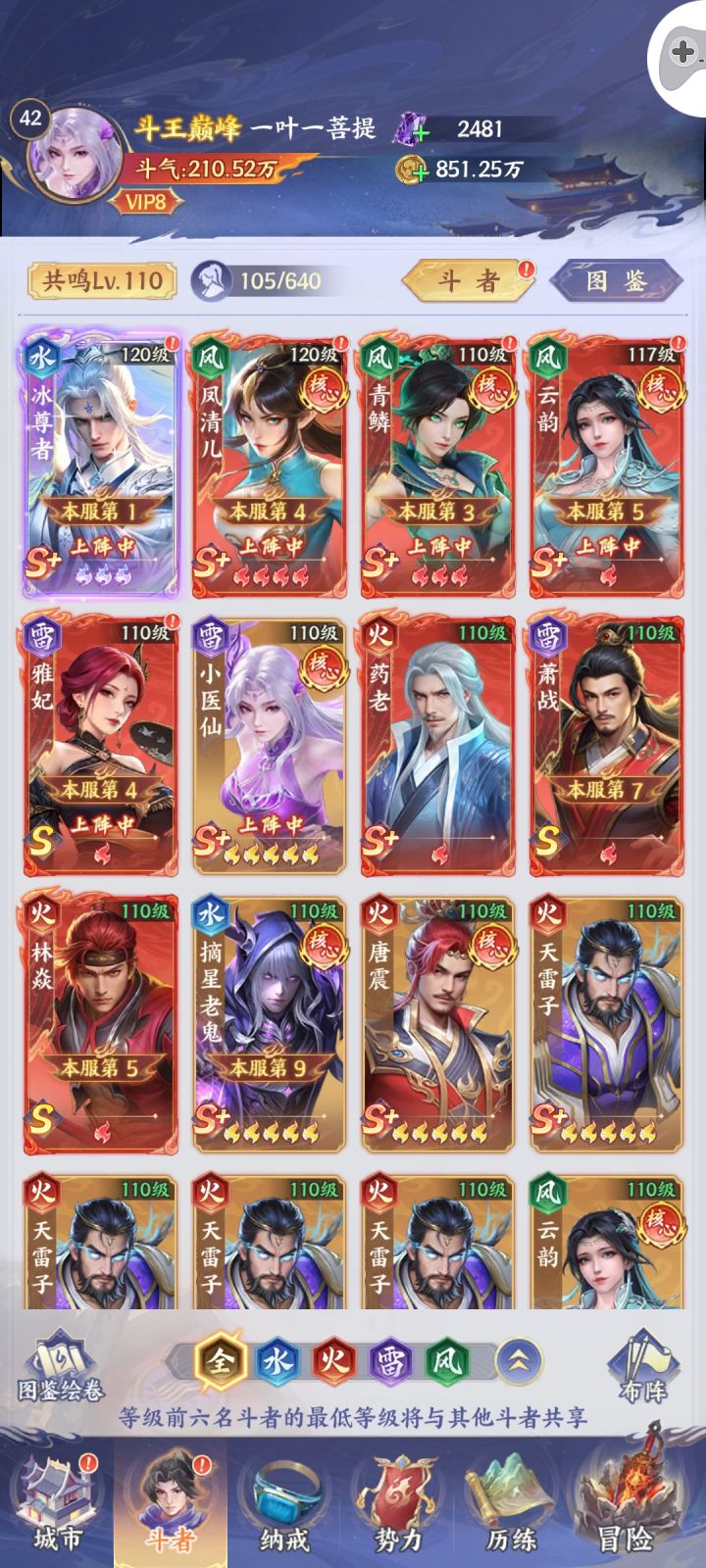 通关必需品,虚无吞炎+冰尊者+药老阵容附图,通杀一切PVE副本,无需更换站位.纯靠虚无打伤害,触发一次虚无吞炎,大概秒对面4分之3的血.青鳞不屈(彩1),萧炎不屈,药老不屈(神级血脉),传说云韵免疫前6次伤害,黑擎死了会给萧炎挂龙护舍弃控制,让对面频繁出手触发虚无吞炎这样6个卡可以防对面秒杀(无间炼狱对面秒人)有龙蛇身法能给几个人带就给几个人带,纯肉斗技,输出一点用没有,全靠虚无吞炎来打