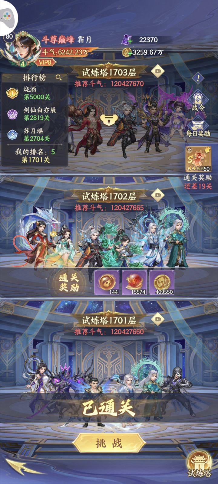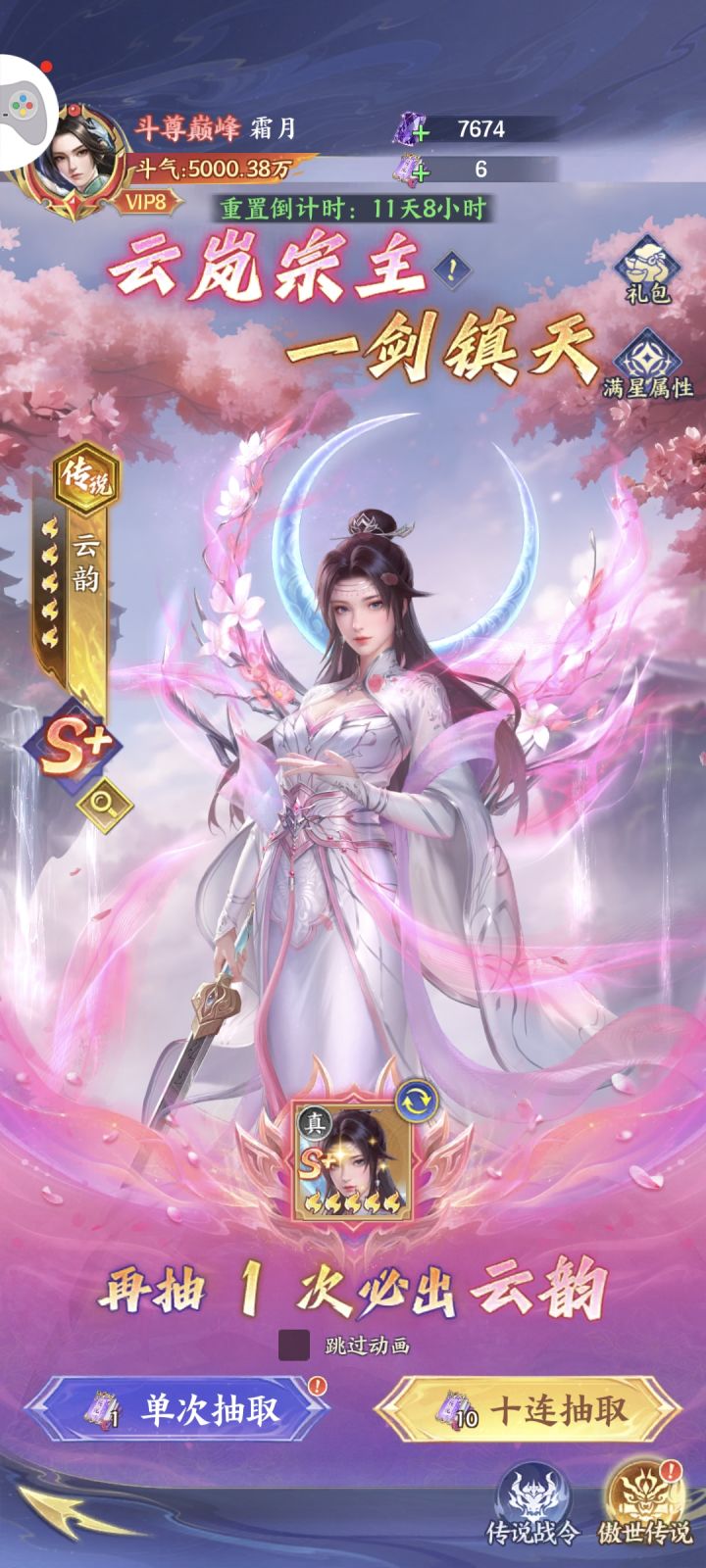 非酋零氪拿下云韵,试练塔怒爬500层