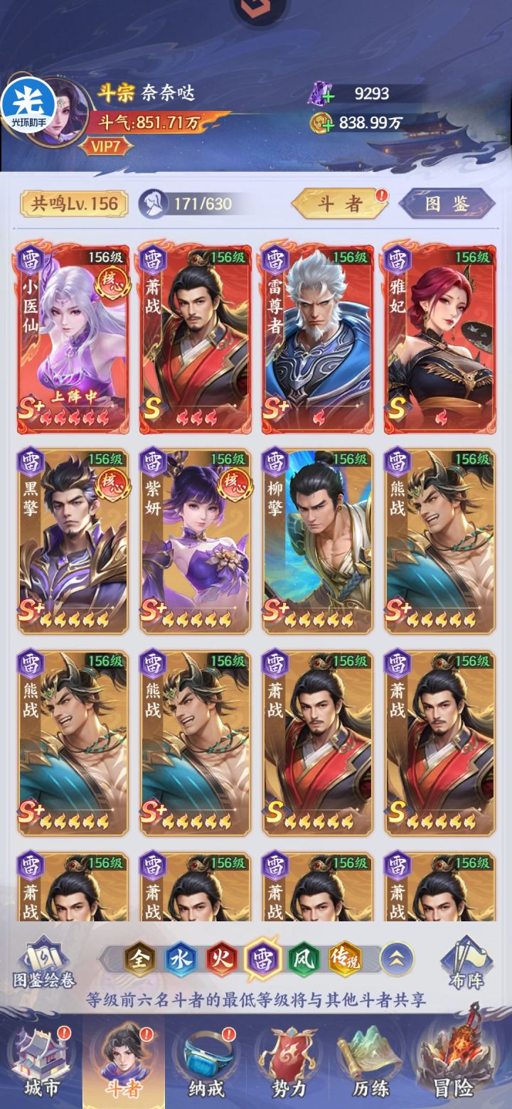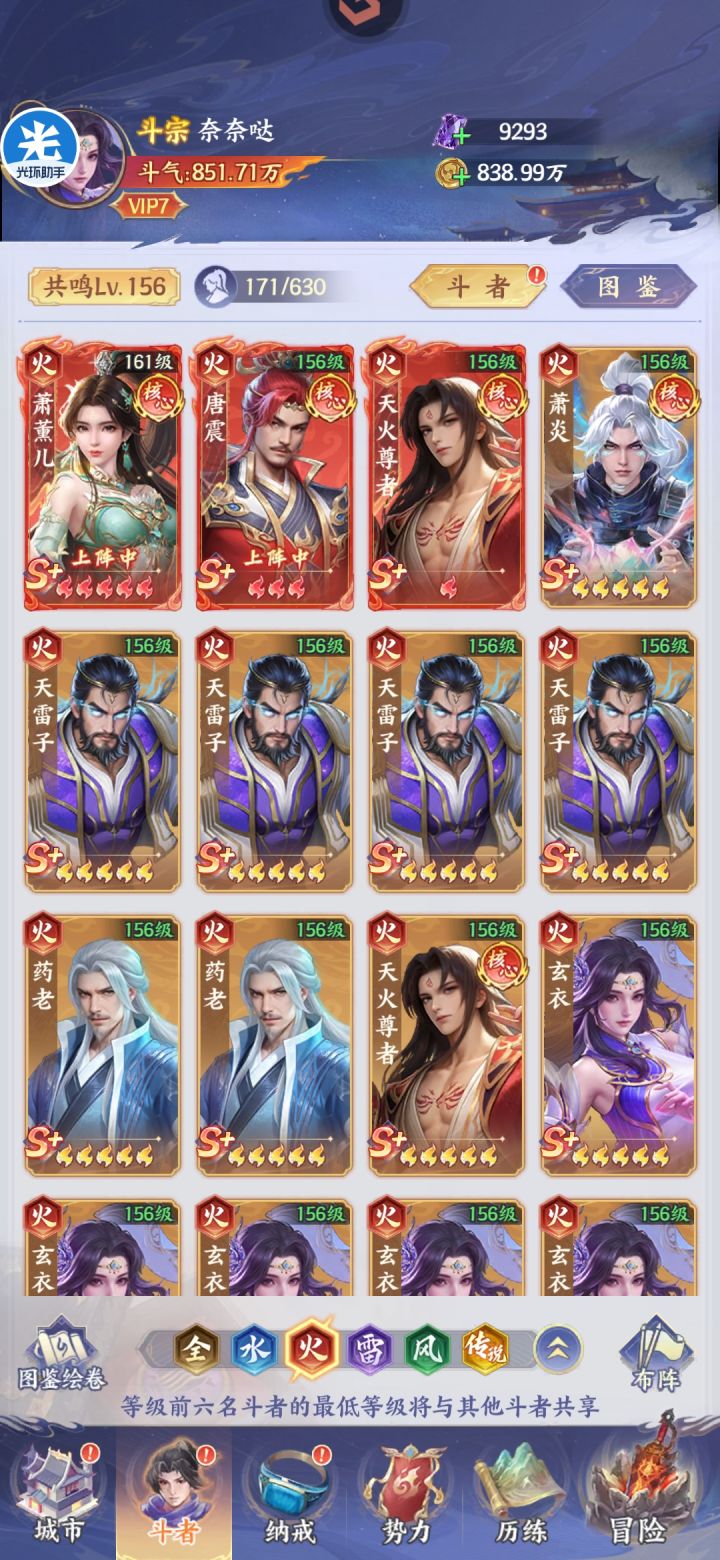 没啥动力,修行也打完了,爬塔点的我都快睡着,还剩一千层没点完,实在是懒得点了为什么一直带着火消,个人觉得这游戏还是蛮缺输出的,一堆辅助只有传萧一个输出,尤其是在打装备副本的时候尤为明显,基本上都是越十几亿战力去打,缺输出根本打不动。四个辅助全部带减防斗技,最主要的是减防可以叠加,两个萧炎放五六号位,到他俩的时候防御已经减的七七八八了。噬生秘法简直就是神技,不多说,建议有条件的拉满,增伤减防持续七