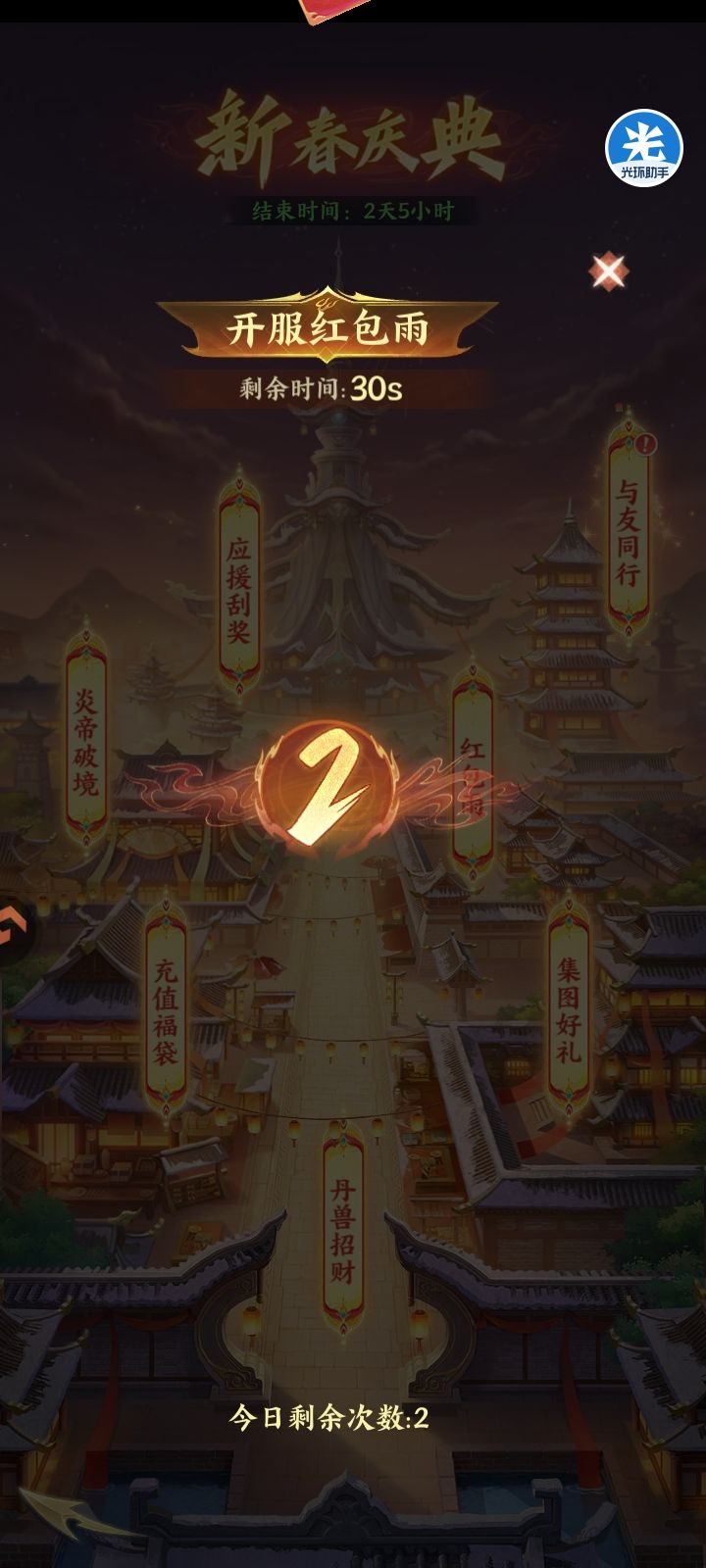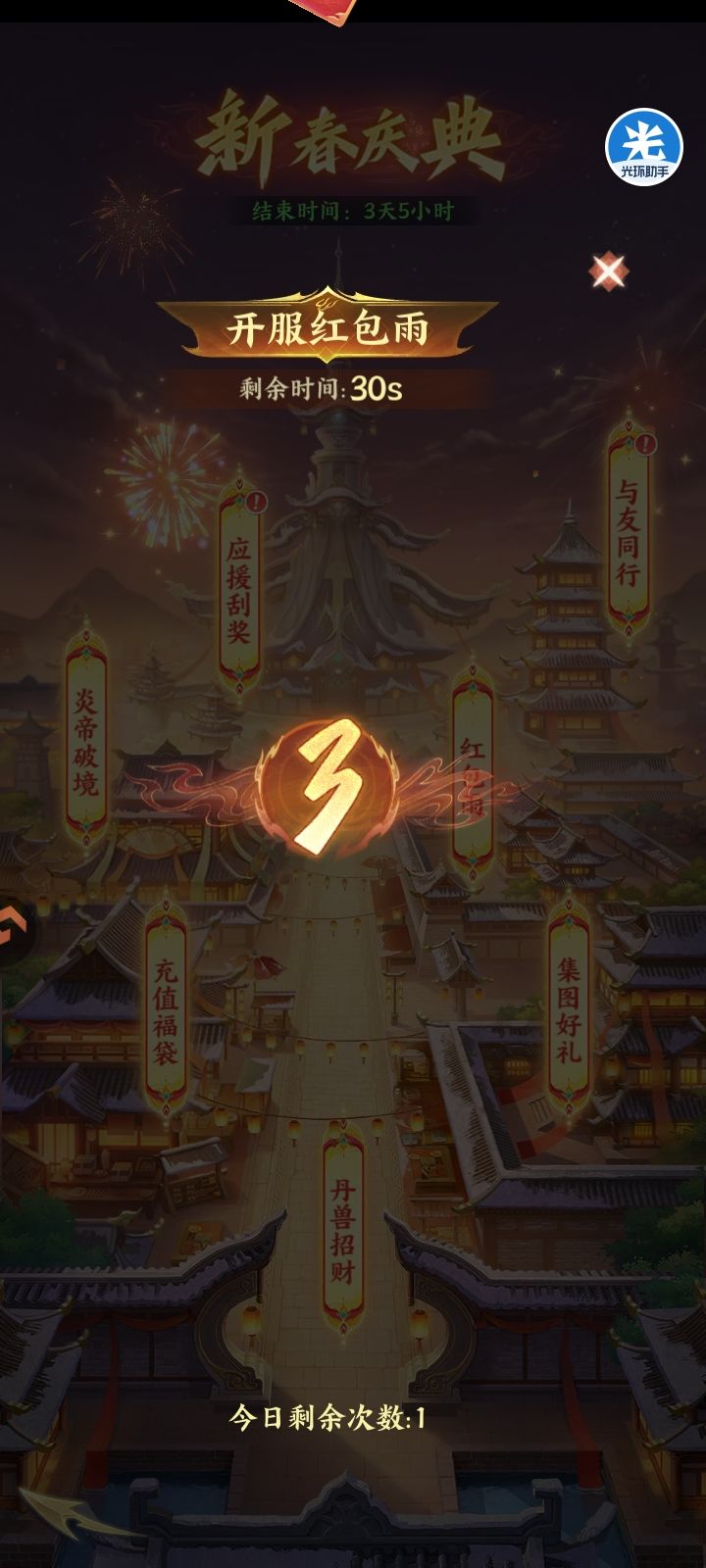 开服的活动跟我之前发的一样就是多一个新春活动。美杜莎皮肤在开服第4天,提前了。·炎帝破境 其实就是开服前7天消炎升星的一个活动,彩1拿一个地阶斗技,彩5拿一个地阶斗技自选。能在一定程度上提升开服氪消炎的强度。个人不太建议为了这俩地阶斗技硬氪。斗技开服第8天就会有抽取活动,可抽取天阶斗技,天为主,地为辅,玄过渡。阵容搭配:消炎阵容:消炎+萧薰儿+小医仙必带,剩下3个位置,工具人冰尊者/摘星老