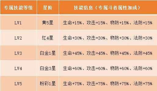 各位斗者好,我是药尘!专属武器是斗者养成的关键一环,搭配合适的专属武器,战斗实力直接翻倍!药尘已为各位斗者整理好专属武器系统详解+升星材料消耗全表,帮大家避开所有养成坑,快码住参考~ 一、专属系统介绍解锁条件:等级达到60级,且开服15天后解锁,在纳戒内可查看操作属性加成:斗者在升级界面装备专属武器后,可直接获得武器对应的属性增益升级方式:消耗专属武器可进阶升星,消耗陨晶可提高专属等级,双