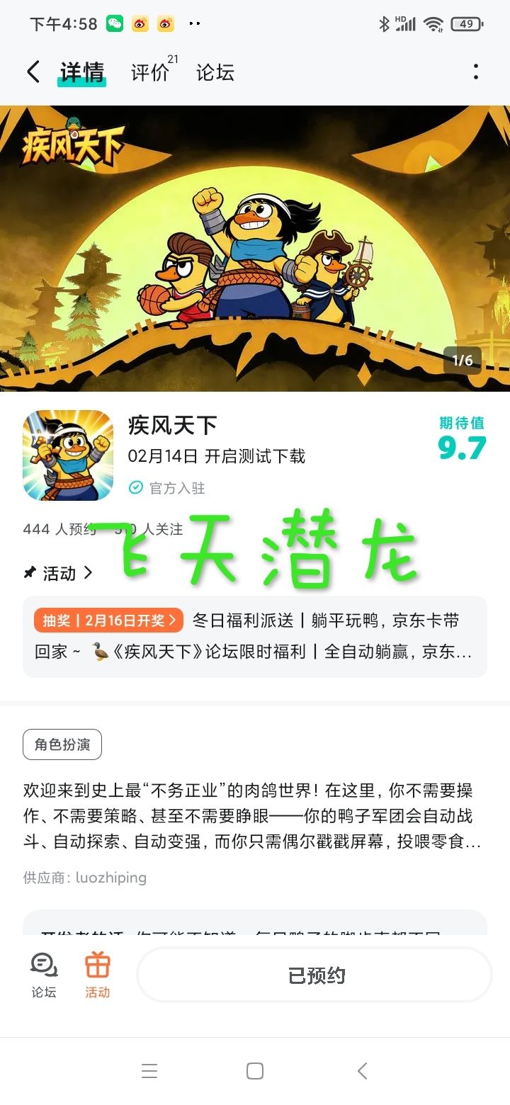 福利不缺席,宠粉不手软!这次直接抽幸运鸭主,免费送京东卡,主打一个躺玩躺赢还能拿奖👇🎁 宠粉活动福利活动结束后,随机抽取1位 幸运玩家,直接送出京东卡 一张!无套路、零门槛,跟着做就能参与,说不定幸运儿就是你🥳📝 简单参与方式(两步到位)1. 点击关注 本发帖账号 + 关注游戏 《疾风天下》,不迷路不缺席开奖通知;2. 在本帖下方评论区随便留言即可(比如“鸭鸭冲鸭”“求中京东卡”),完成