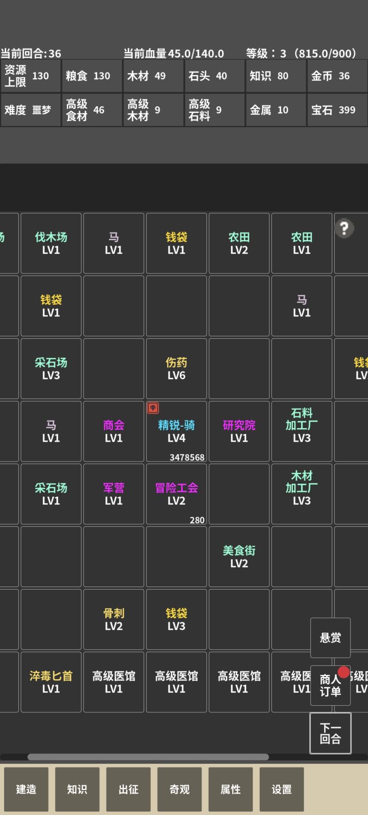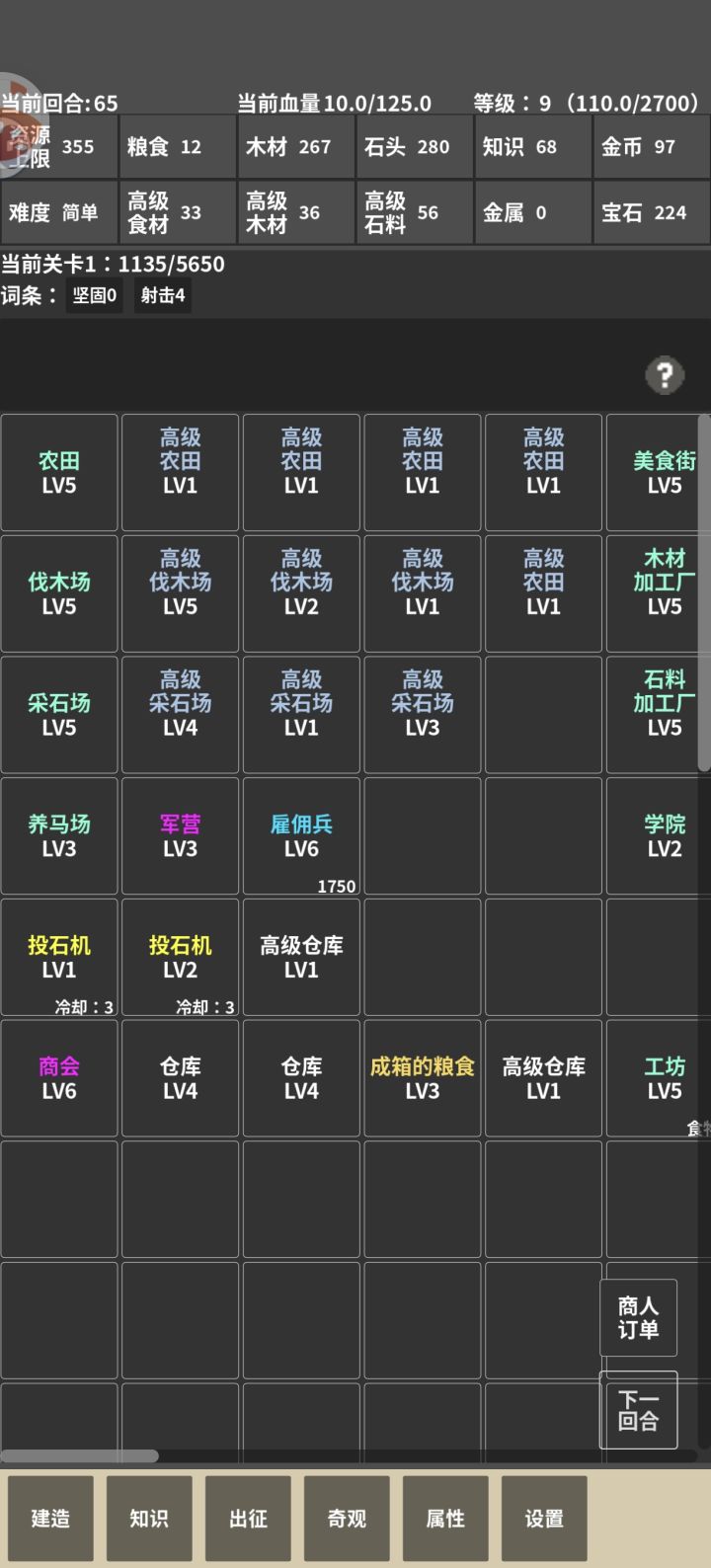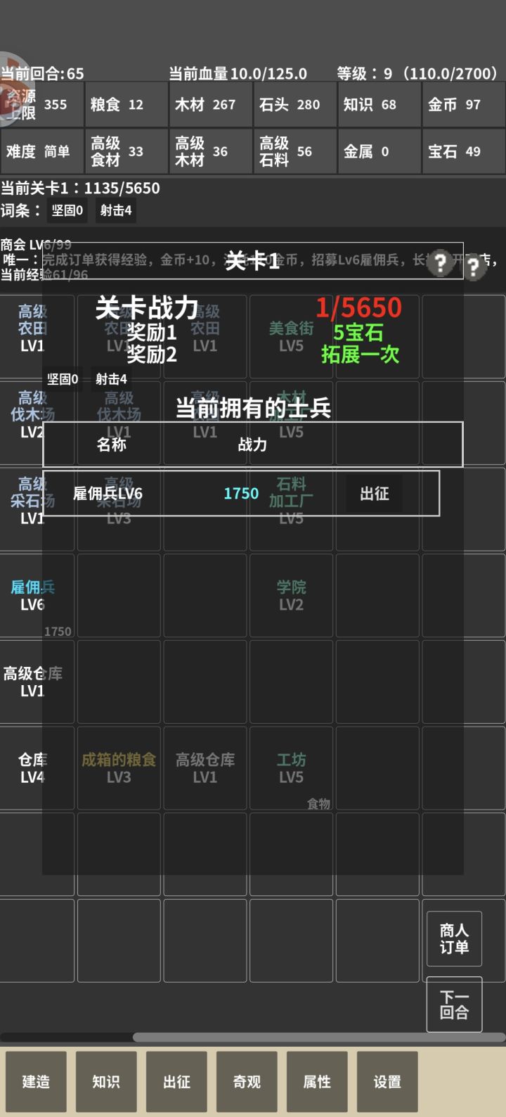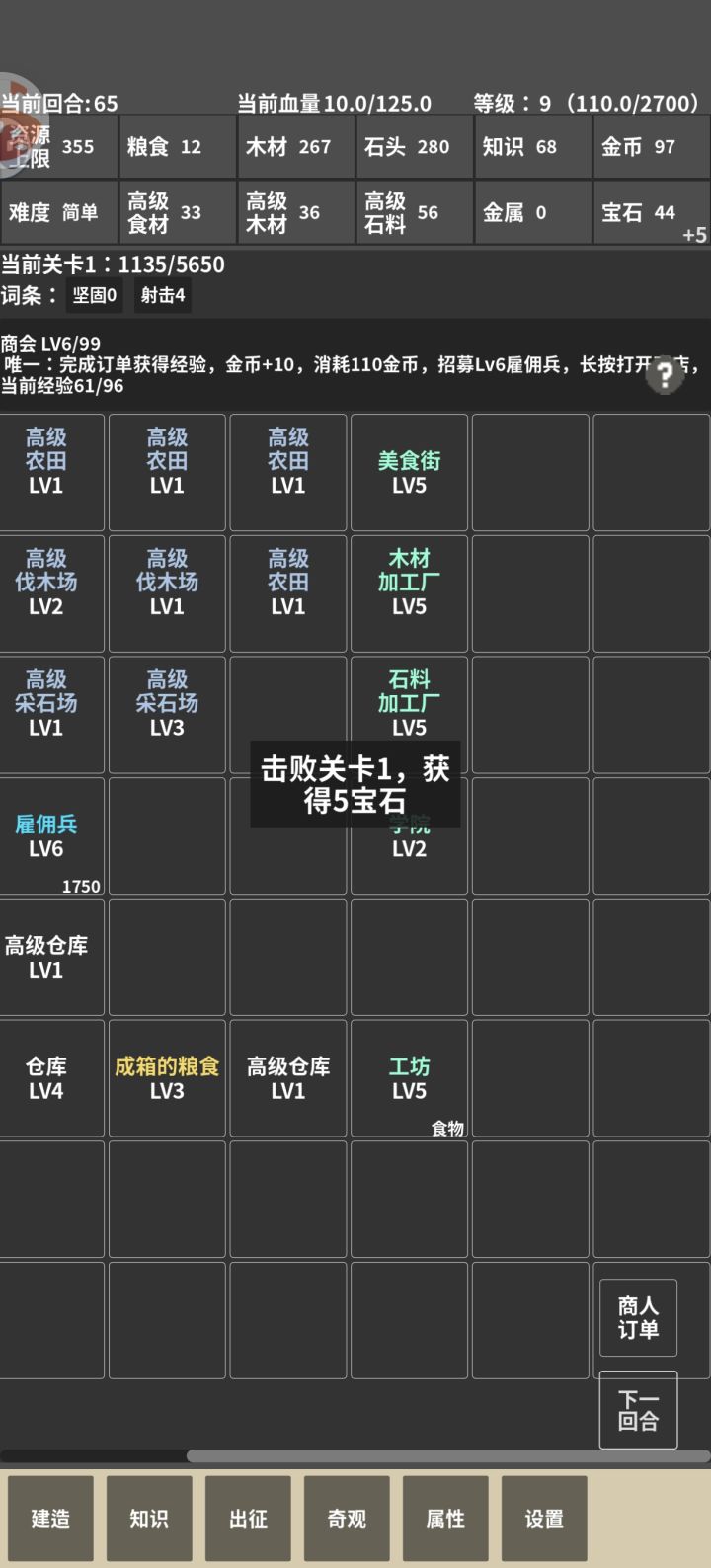 没想到自己也碰见bug了,加油作者如图,65回合打死关卡一后出征那边卡在关卡一了,而且显示只剩一滴血,再次点击攻击后还能重复获得奖励,土地已经叠了好多后面我测试点下一回合会不会没掉,结果没受伤,因为正常来说我那点血撑不过下一次射击