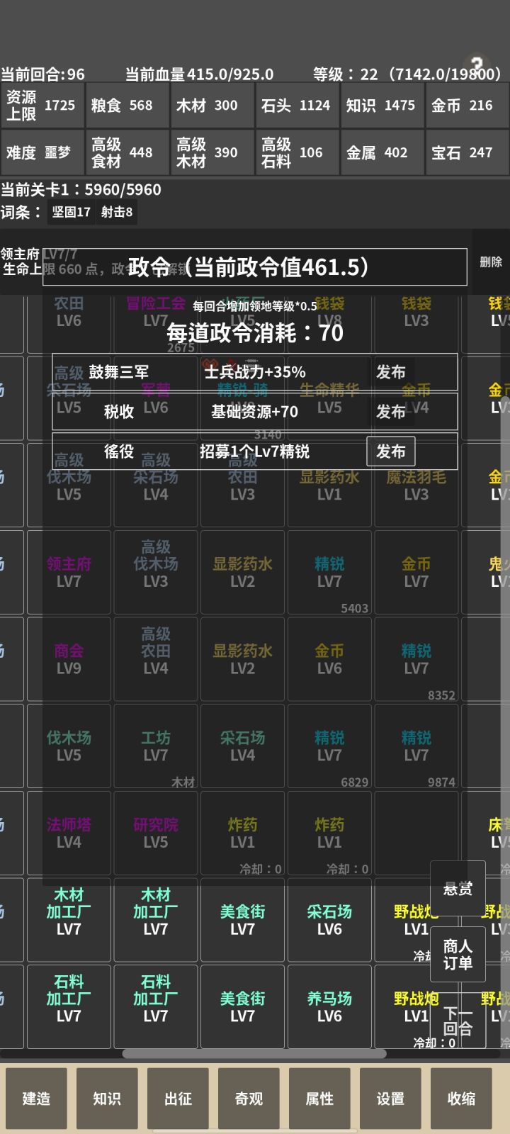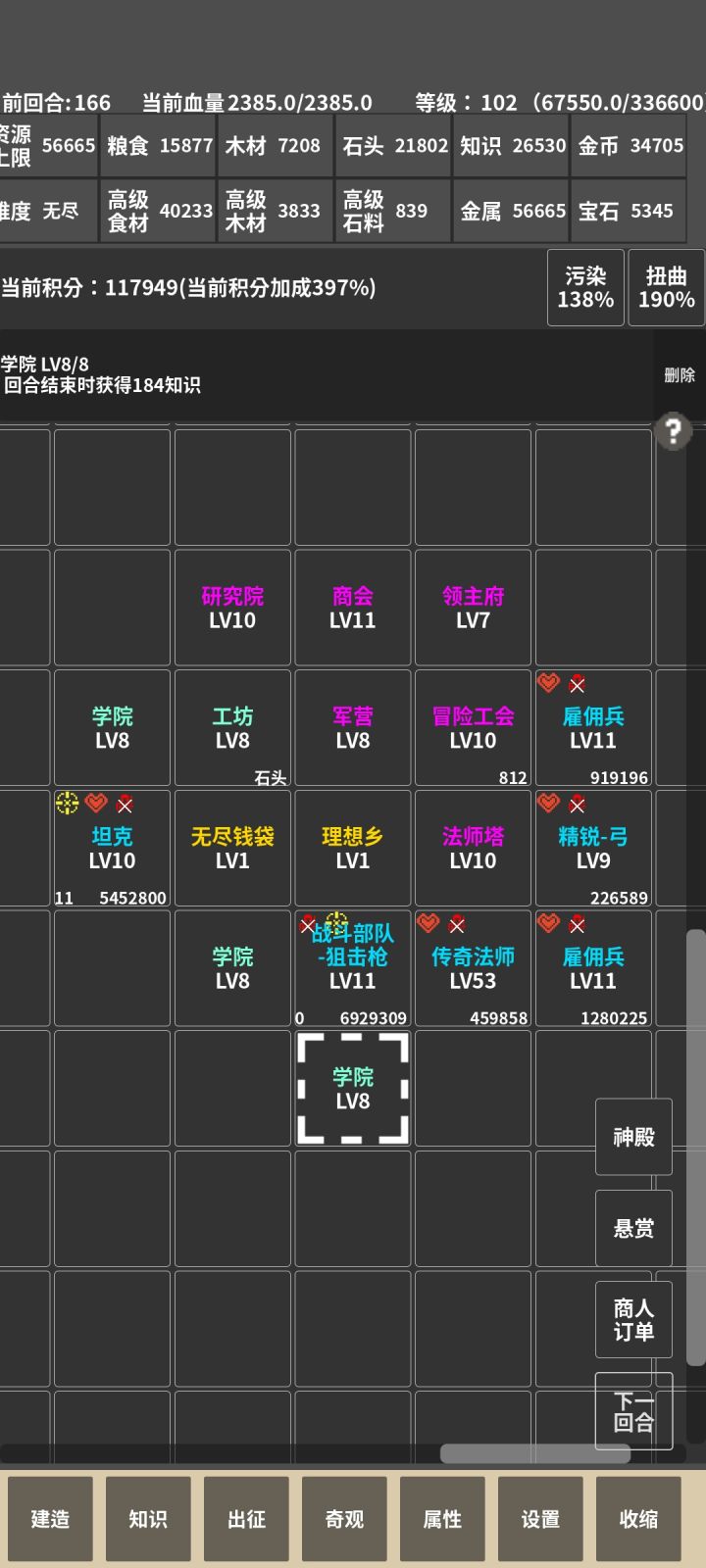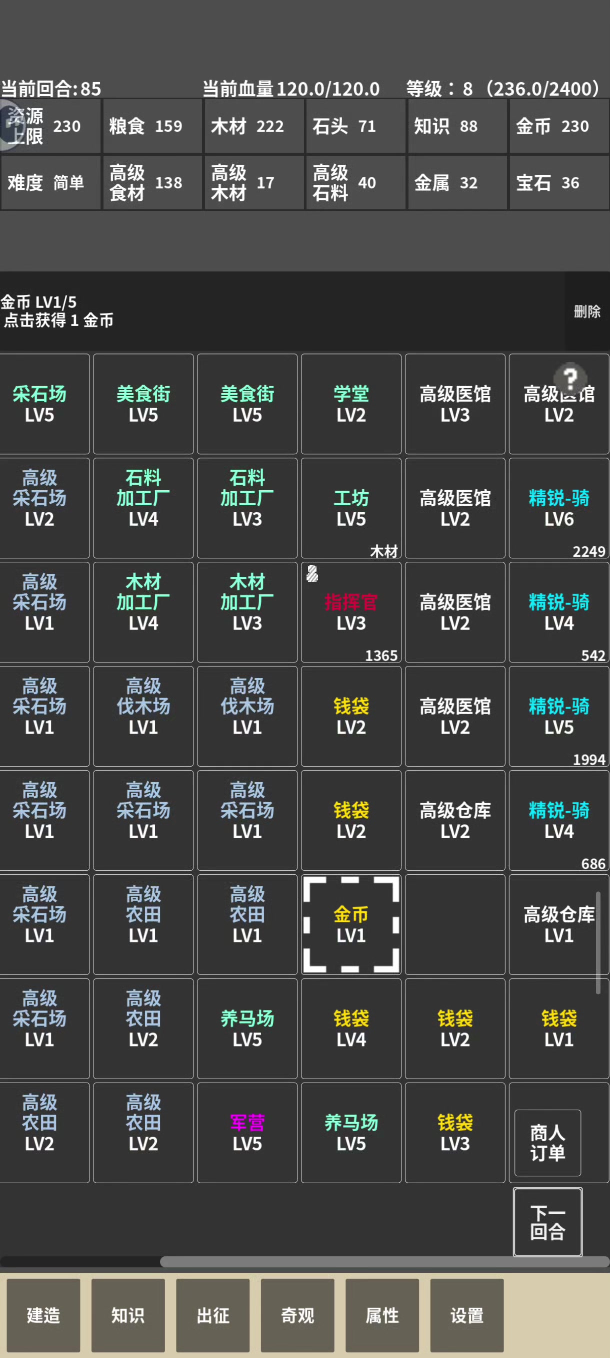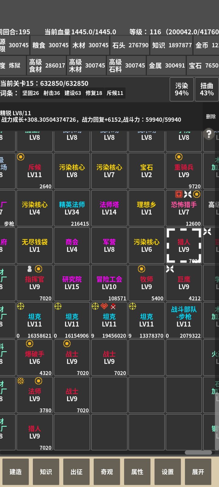 没想到自己也碰见bug了,加油作者如图,65回合打死关卡一后出征那边卡在关卡一了,而且显示只剩一滴血,再次点击攻击后还能重复获得奖励,土地已经叠了好多后面我测试点下一回合会不会没掉,结果没受伤,因为正常来说我那点血撑不过下一次射击