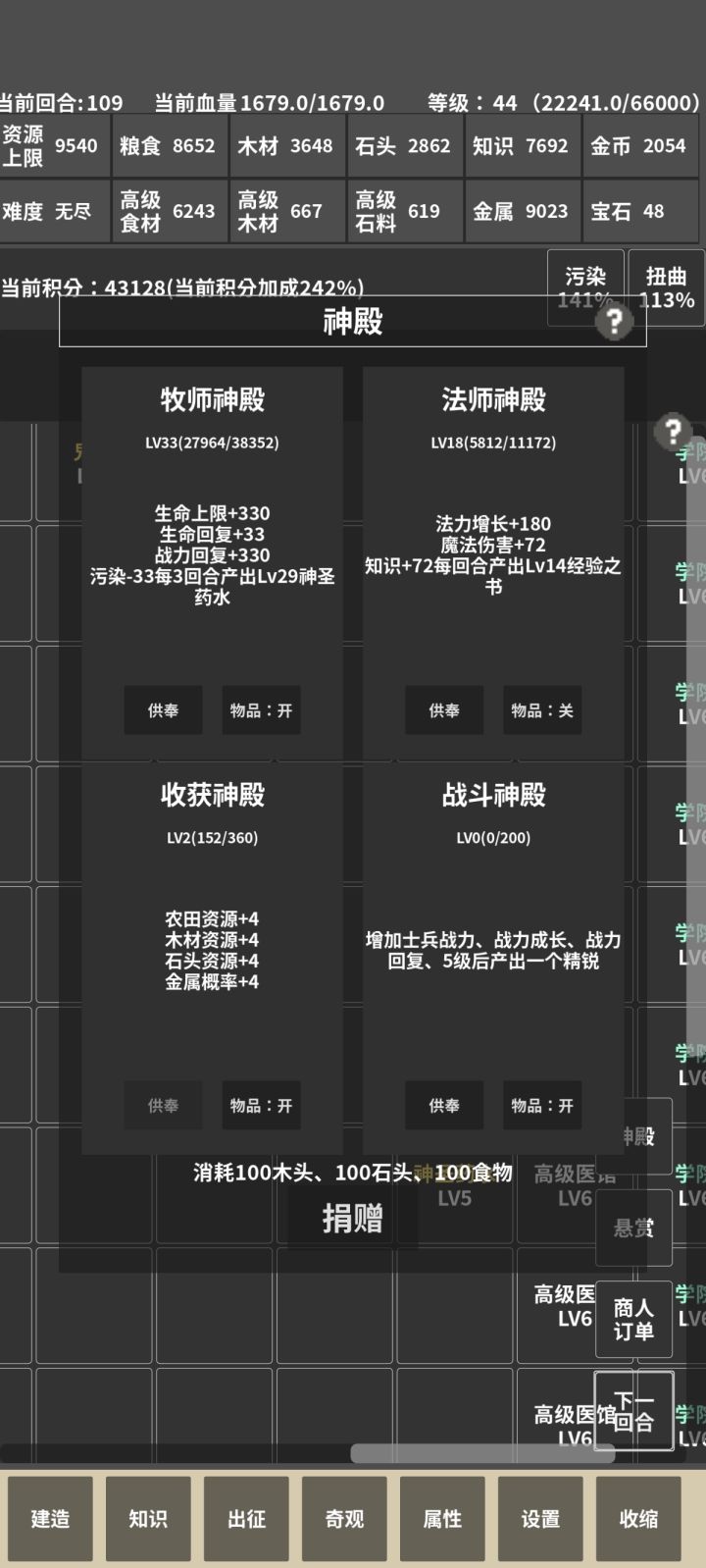 这游戏其实不难,无尽也只是比其他模式在开始的时候难一点点。先说结论,士兵用新兵-精锐-雇佣兵-狙击手-坦克。神殿主升牧师神殿,封印、前期注意卡怪--后面是些废话和细节。按我玩了两把的经验来说,40天前需要小心翼翼,后面没啥难度,重点把控士兵路线,拒绝那些浪费时间又花里胡哨的兵种(点名武馆、魔法师)。士兵路线,用新兵-精锐-雇佣兵-狙击手-坦克,其他的尽量不碰,刀盾、弓箭手、骑兵看着办吧,其实不影响