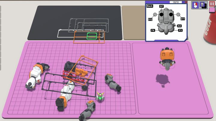 我对胶圈了解不多,不太会用圈内术语表述这个游戏的玩法,所以就用比较简单易懂的语言来描述。游戏玩法比较简单,拆解过程还是很还原现实的,右侧图示也会显示拼装步骤,标绿的部位是要最先开始拼装的,后续的部件会以白色线框表示,拼装图上也有对应的部件标号,我们只要按照一张图纸一张图纸的顺序把每个部件拼装好,然后再将这些部件组合成一个成品模型即可。部件之间到达一定的范围内会自动吸附,不需要我们做额外的操作。