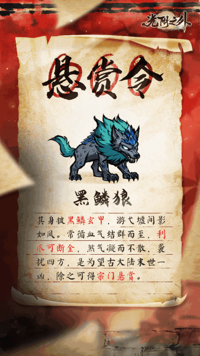 墨云低垂的废墟间,它们悄然逼近——黑鳞狼,身覆玄甲,奔走时如影随形,利爪撕裂残垣。此兽凶戾成群,嗅得生灵气息便结阵袭扰。若在宗门周边见其踪迹,务必警惕!但危机亦藏机缘,其皮毛是极其珍贵的材料,猎之亦可得宗门悬赏~---------------------------------------------------------------------------------拔剑弑神,向死而生!