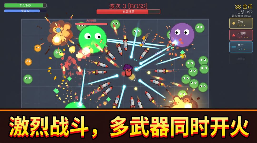 一款类土豆兄弟的Roguelike生存射击游戏。操控可爱的小豆丁,在波次敌人的围攻中生存下来!收集经验升级,解锁多种武器和被动技能,挑战强力Boss,看你能坚持多久!