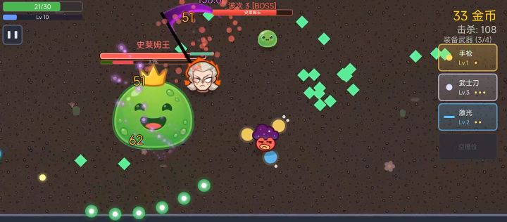 还有些细节和优化的地方,真的得好好打磨打磨。后期波次怪一多,屏幕就开始掉帧卡顿,尤其是 BOSS 战的时候,特效一炸,操作都跟着发飘,手感差了不少。还有主角被攻击的时候,反馈真的太不明显了,后面场景眼花缭乱的,根本没察觉到自己在掉血,能不能加个震动反馈啊。移动倒是挺丝滑的,但武器切换的反馈太弱了,有时候切了枪半天没反应,打击感也不够扎实。音效倒是挺清脆的,捡金币、升级的声音听着都很舒服,但 BGM 实在太单一了,循环来循环去就那一段,玩久了真的会腻。