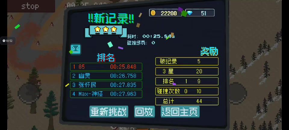 根本无法想象3星的48秒该怎么扣出来,我这是2星的52.8秒[表情_惊恐][表情_豹哭]#像素拉力赛TapTap测试版