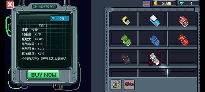1.新增车辆 F001 (不消耗氮气,但是无法修改氮气强度)2.车辆B001,最大速度增加 103.氮气火花塞 氮气容量+104.氮气发生器 氮气强度+0.15.结算时 若没有影子数据则没有排名奖励 bug修复