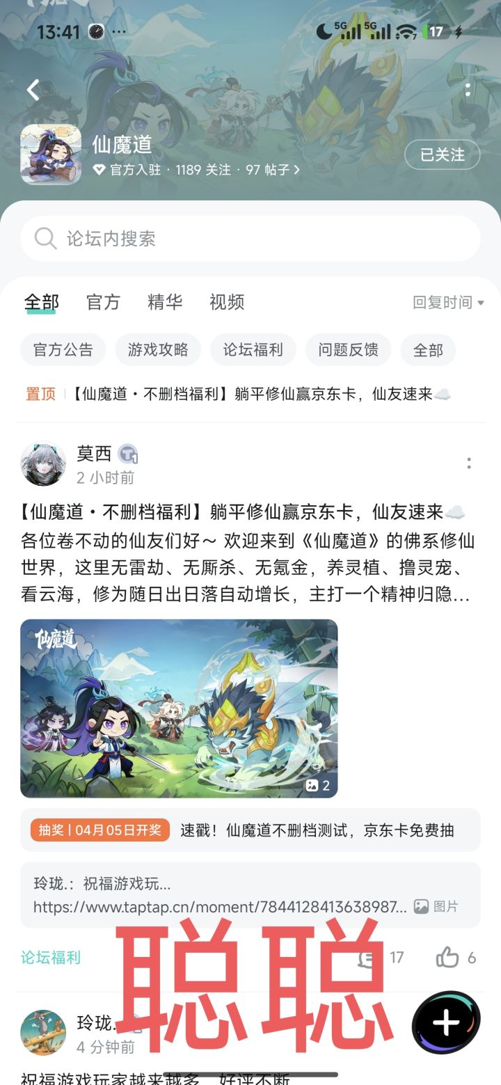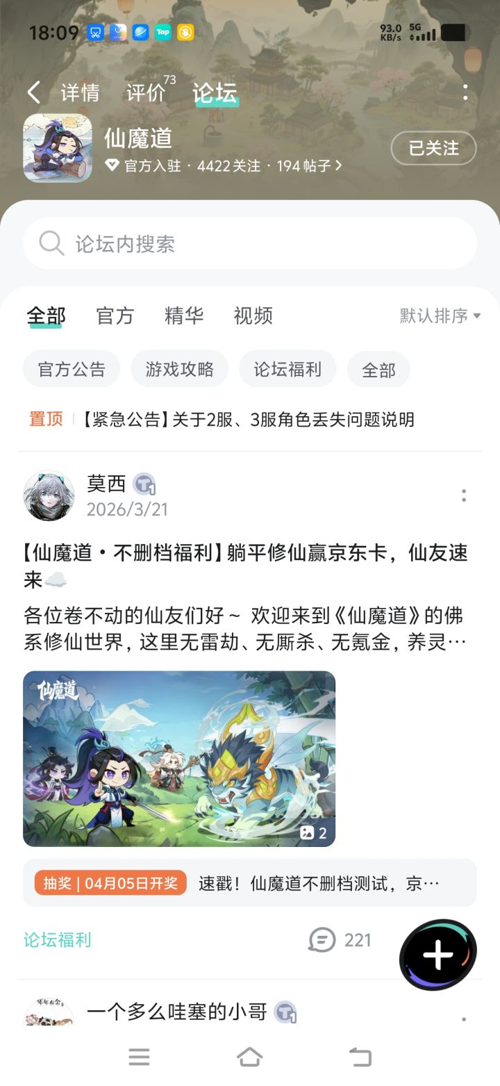 各位卷不动的仙友们好~欢迎来到《仙魔道》的佛系修仙世界,这里无雷劫、无厮杀、无氪金,养灵植、撸灵宠、看云海,修为随日出日落自动增长,主打一个精神归隐!恰逢游戏不删档测试开启,小仙为大家准备了专属福利抽奖,京东卡免费送,快来躺赢福利啦~📝 参与方式1.点击关注本发帖账号,并预约 / 关注《仙魔道》游戏主页2.在游戏《仙魔道》论坛发布一个新帖子(内容不限~)3.回到本帖评论区,附上你的发帖