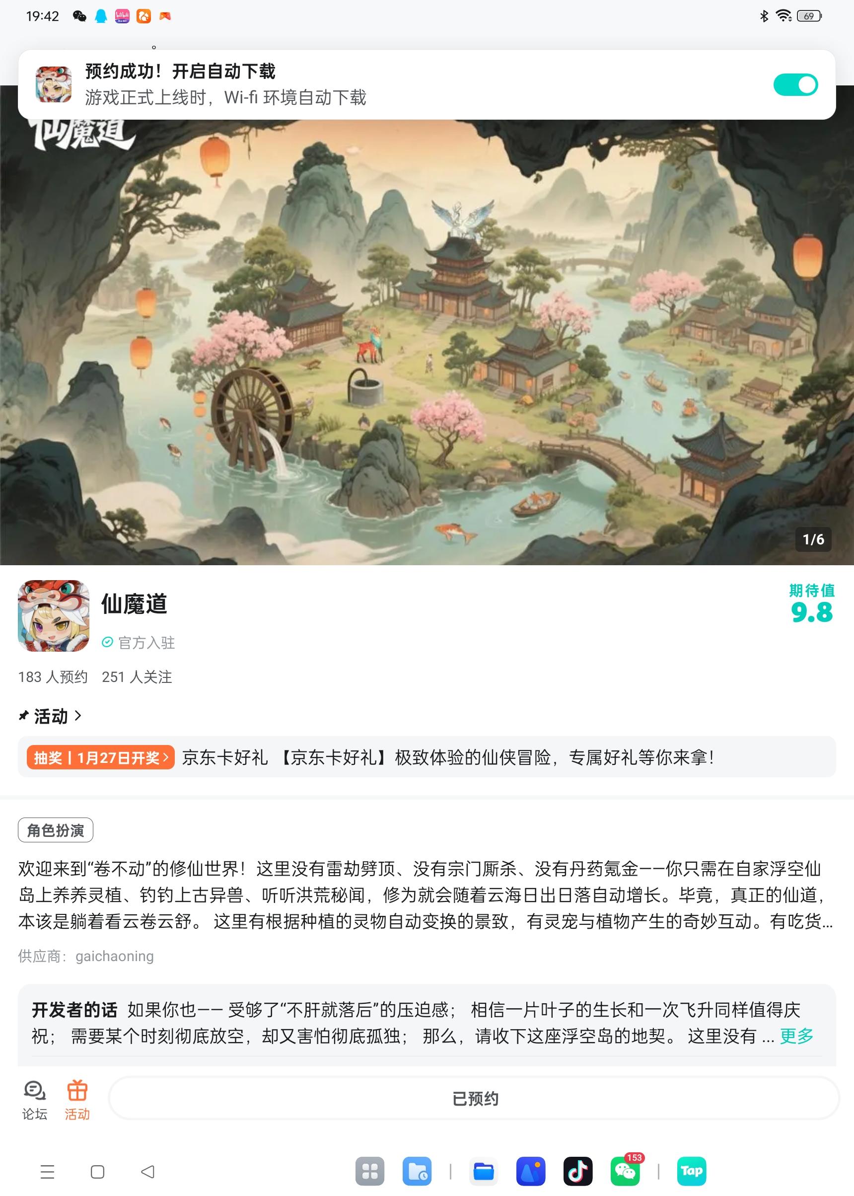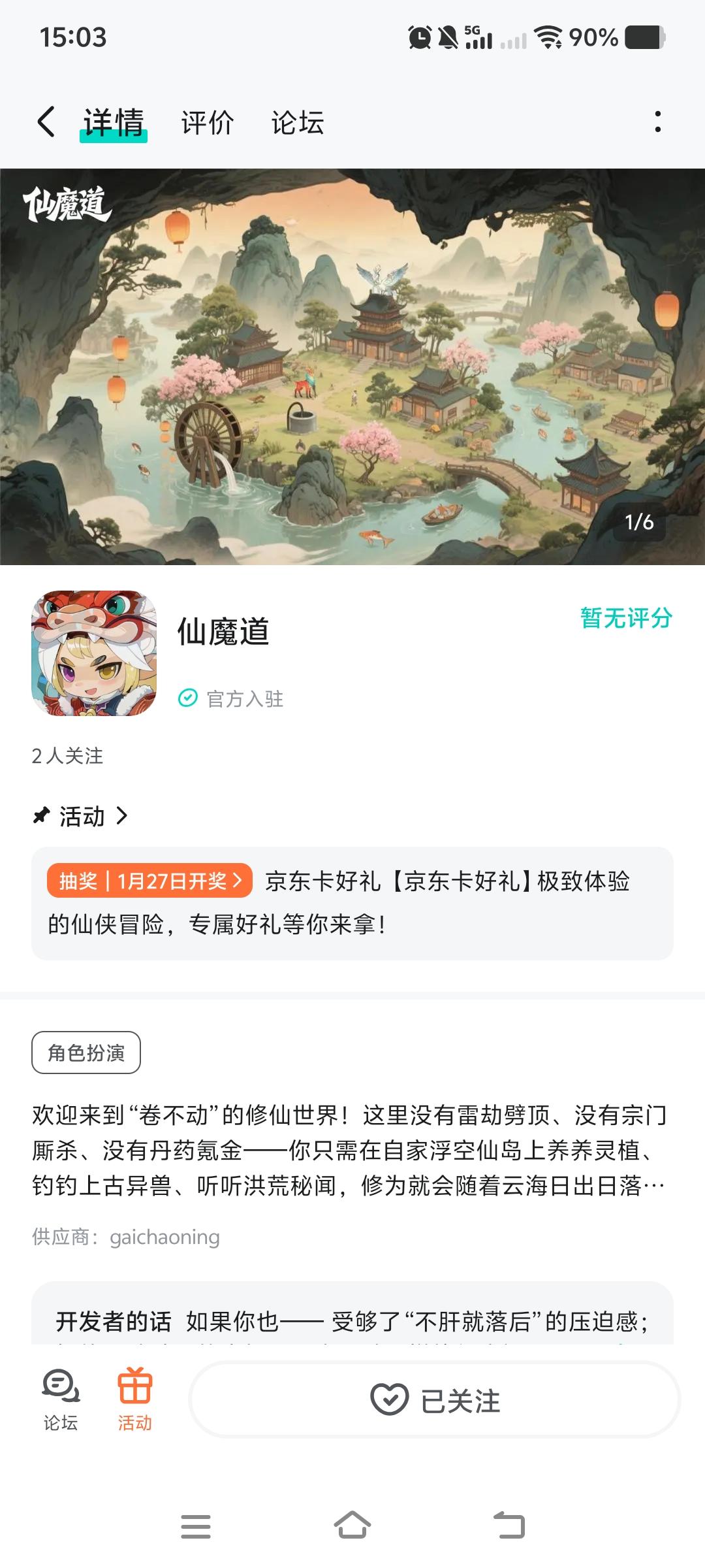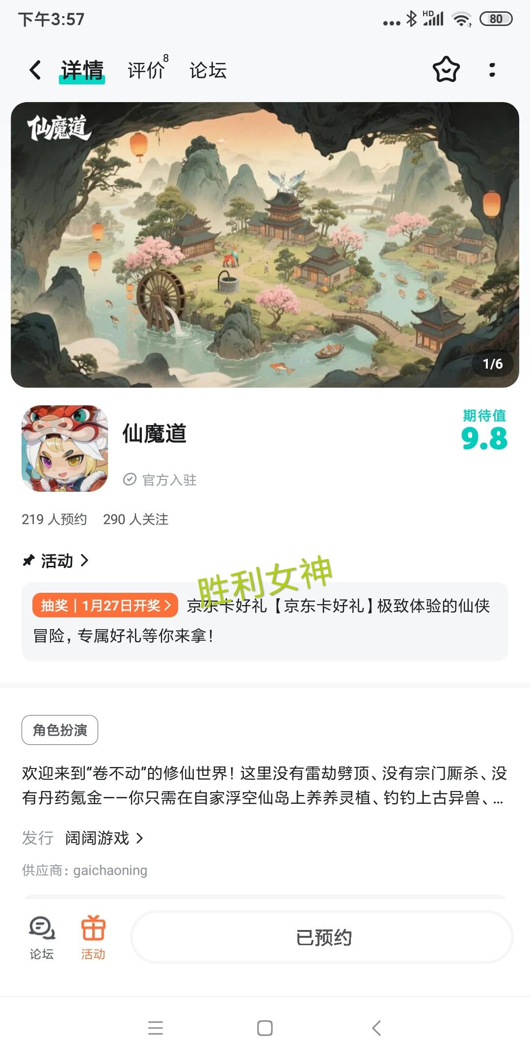 专属福利:【京东卡抽奖活动】▶ 参与方式1.点击关注发帖账号并关注《魔道仙》2.在本帖下方评论区分享发帖链接即可【奖品发放】到达开奖时间后,由taptap系统随机抽取符合要求的幸运玩家,自动发放兑换码(对于同一账号大量故意发布评论刷楼层导致其他玩家中奖概率降低的行为的用户,将会可能被取消参与资格!)▶ 活动奖励活动结束后将抽取位1幸运儿获得1张10元京东卡解锁更多机缘:📢 第一时