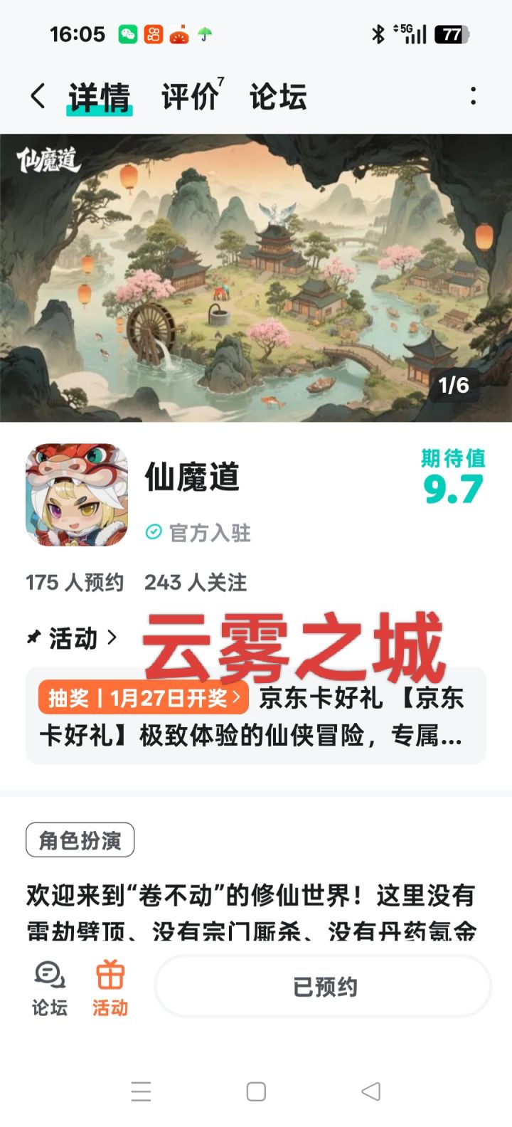 专属福利:【京东卡抽奖活动】▶ 参与方式1.点击关注发帖账号并关注《魔道仙》2.在本帖下方评论区分享发帖链接即可【奖品发放】到达开奖时间后,由taptap系统随机抽取符合要求的幸运玩家,自动发放兑换码(对于同一账号大量故意发布评论刷楼层导致其他玩家中奖概率降低的行为的用户,将会可能被取消参与资格!)▶ 活动奖励活动结束后将抽取位1幸运儿获得1张10元京东卡解锁更多机缘:📢 第一时