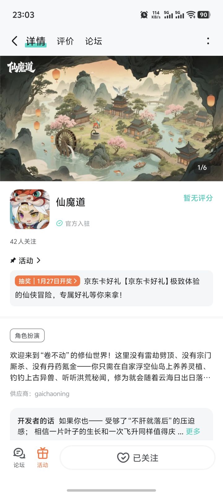 专属福利:【京东卡抽奖活动】▶ 参与方式1.点击关注发帖账号并关注《魔道仙》2.在本帖下方评论区分享发帖链接即可【奖品发放】到达开奖时间后,由taptap系统随机抽取符合要求的幸运玩家,自动发放兑换码(对于同一账号大量故意发布评论刷楼层导致其他玩家中奖概率降低的行为的用户,将会可能被取消参与资格!)▶ 活动奖励活动结束后将抽取位1幸运儿获得1张10元京东卡解锁更多机缘:📢 第一时