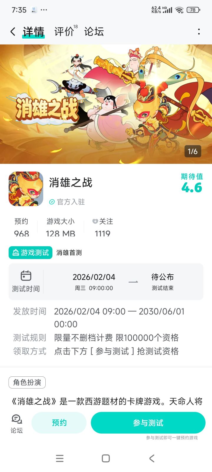 消雄之战:寻找天命人已开启,踏入西游世界,修道者自证大道,参与测试下载既有机会赢取京东卡豪礼~《消雄之战》是一款以经典西游为背景的放置卡牌游戏。天命人可收集人气神将,解锁羁绊、自由搭配阵容,在策略与养成间找到最舒适的节奏。游戏支持放置挂机,离线也能稳步变强;上线领取丰厚资源,推图闯关、试炼爬塔、热血对决等玩法层层展开。轻松不费力、随玩随停——现在就化身天命人,收服妖怪、闯荡三界吧!♦️立即预约